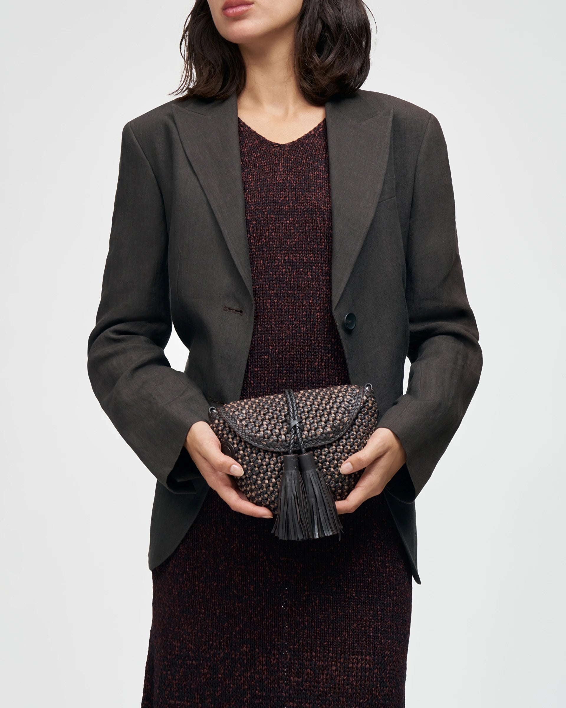 Esta sofisticada bandolera Noodbag está confeccionada en piel de cordero de alta calidad y trenzado a mano, en un elegante color moca. Su diseño en forma de media luna le otorga un toque moderno y único. La bandolera cuenta con una correa de 110 centímetros de longitud y un práctico cierre magnético.. Con dimensiones de 20x14x4 centímetros, es perfecta para cualquier ocasión. Agrega estilo y funcionalidad con este bolso que será el complemento ideal para tu look.