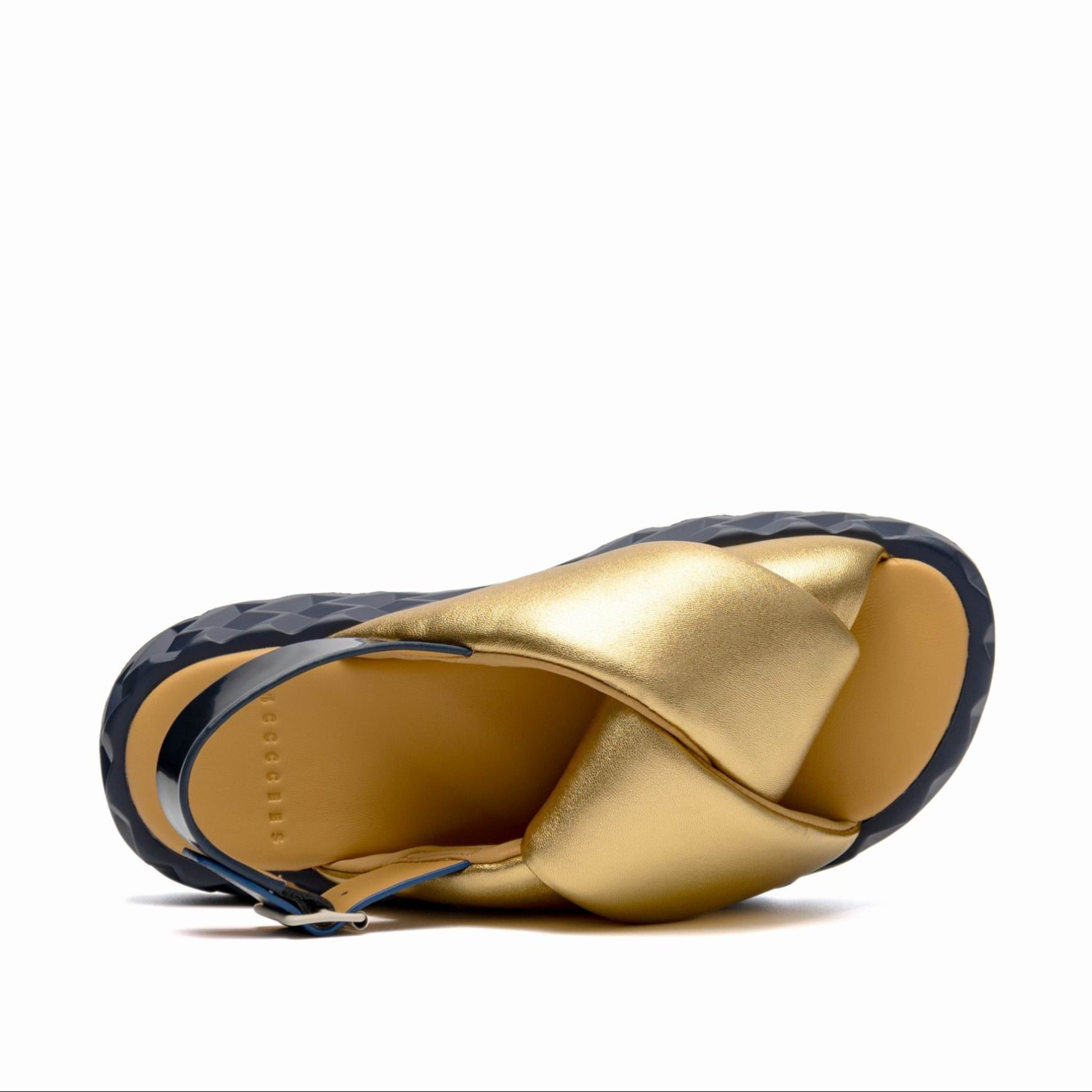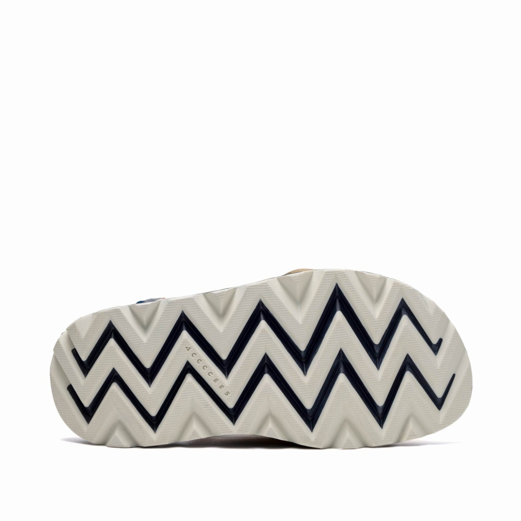 Aquest model pot semblar familiar, però si es mira de prop es pot sentir alguna cosa nova. Té la signatura de 4CCCCEES, tires creuades suaus, mentre que una corretja s'enrotlla a una altra peça, presenta suavitat amb una sensació tàctil única. Les corretges amples i la corretja posterior ajustable permeten un ajustament segur.