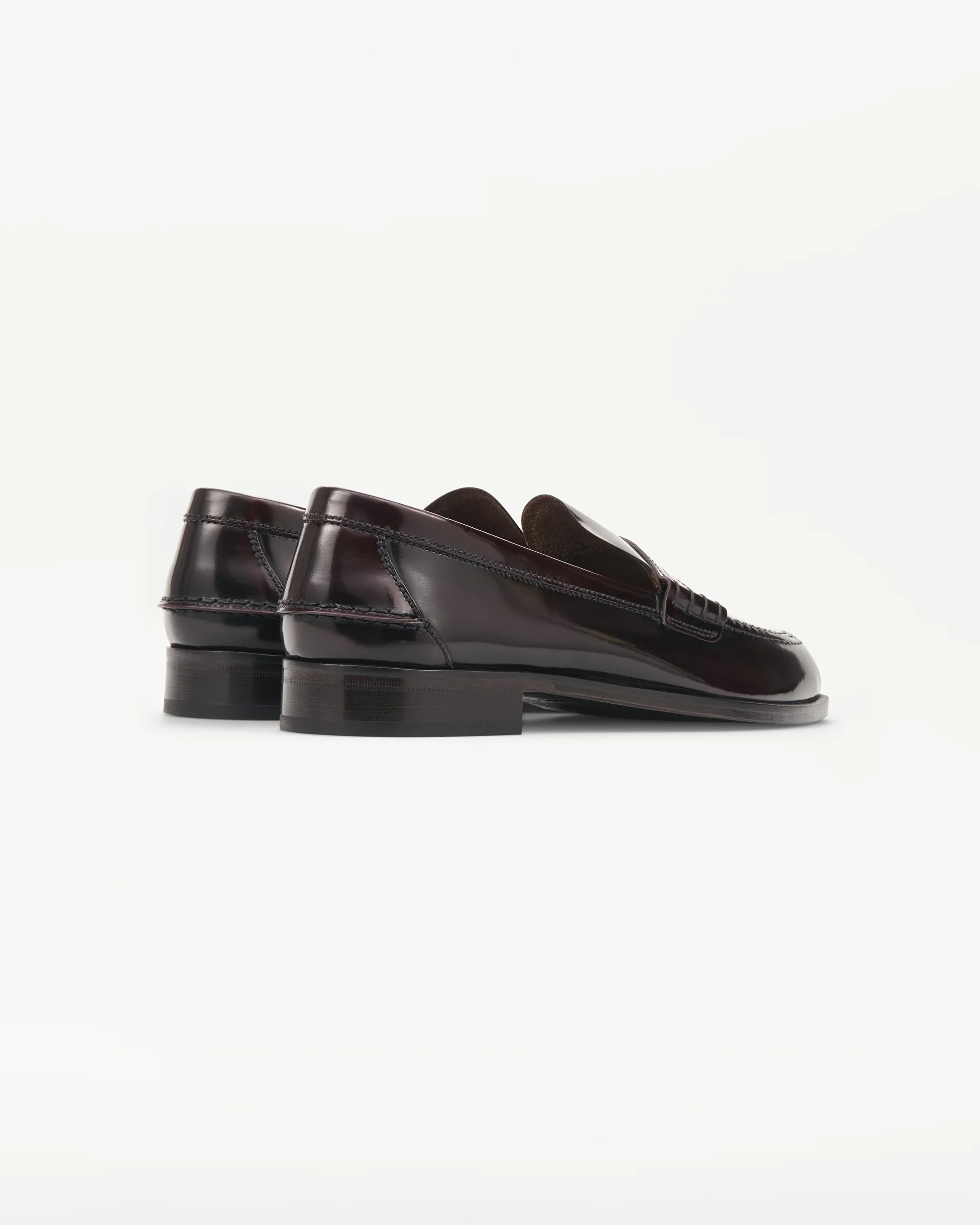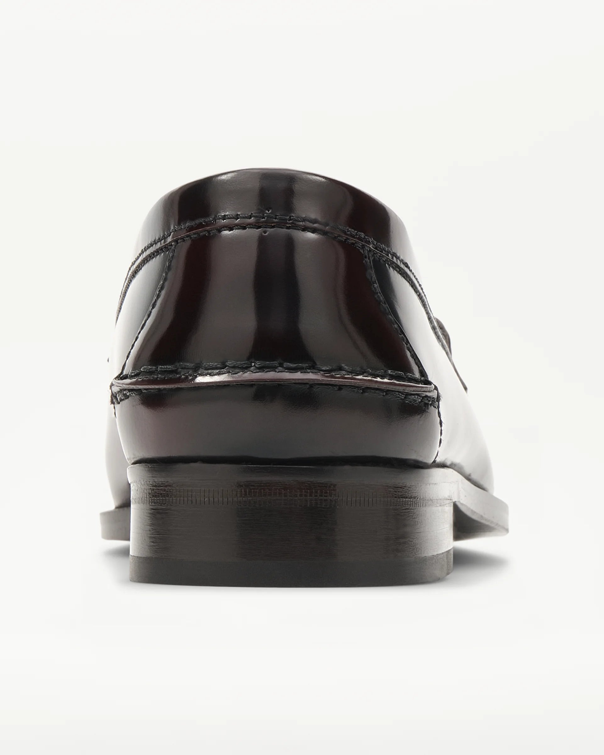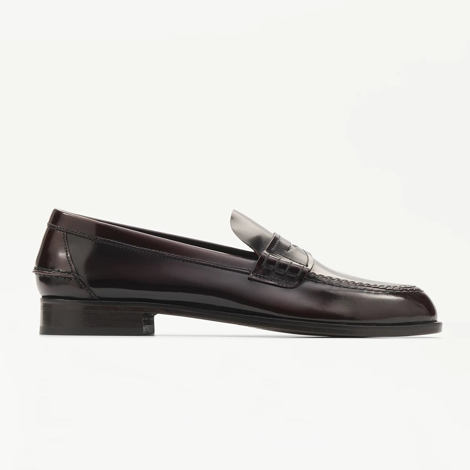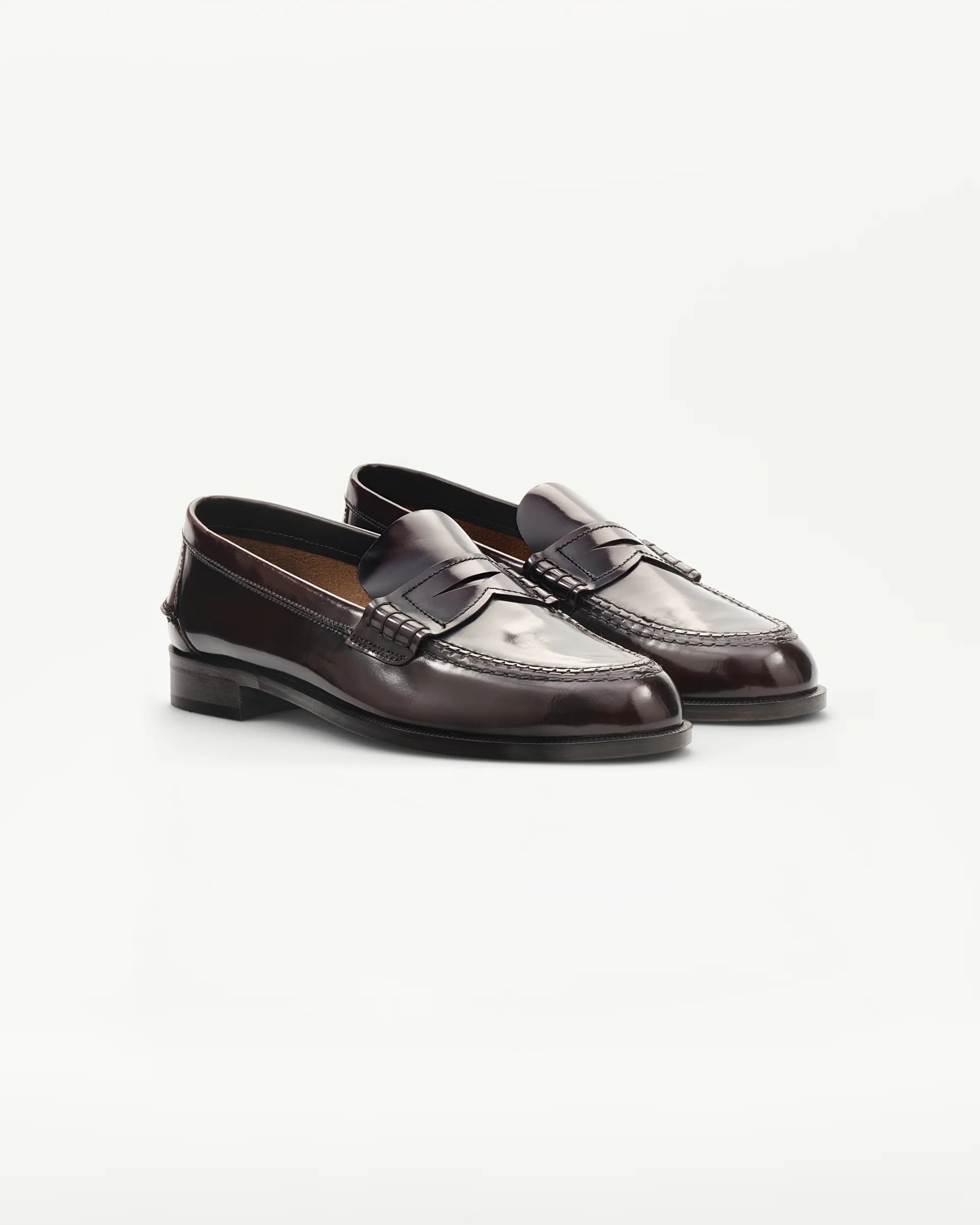 Aquests clàssics mocassins per a home, pertanyents a la col·lecció Liberty, estan confeccionats en pell de boví suau i resistent amb acabat brillant. Presenten un estil tradicional amb puntera ametllada i no tenen cordons, per la qual cosa es poden posar i treure còmodament. El distintiu color bordeus d'aspecte brillant els converteix en una opció ideal per a diverses ocasions.