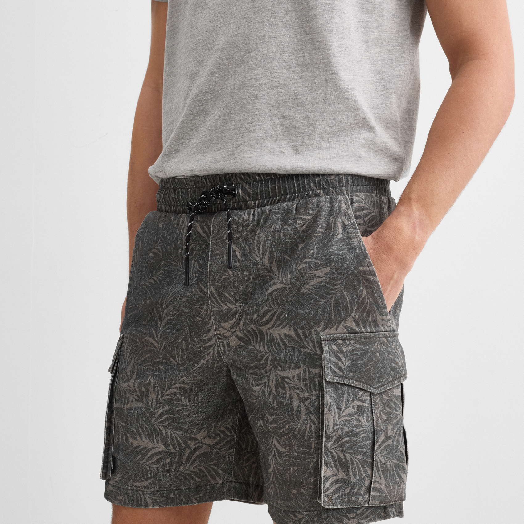 Bermuda tipo cargo con bolsillos laterales, cinturilla ajustable con cordón técnico al tono y corte regular. La sarga de algodón con elastano le aporta gran comodidad y el estamado al tono de la un toque distintivo. .