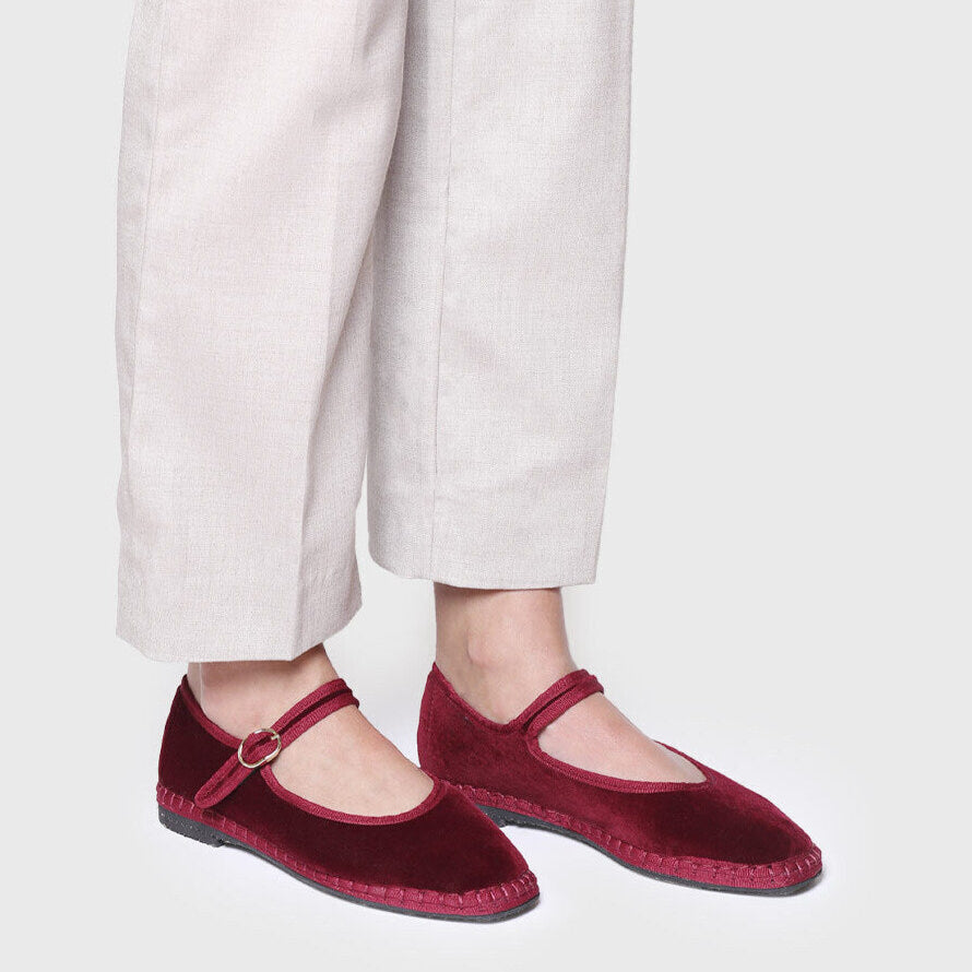 Toni Pons' burgundy velvet Mary Janes combine classic elegance and timeless comfort. Crafted from soft, high-quality velvet, these Mary Janes feature an adjustable buckle strap for a perfect fit, plus a flexible, slip-resistant sole for all-day comfort. Their delicate and versatile design makes them the ideal footwear for both special events and everyday wear. If you're looking for comfortable, elegant women's Mary Janes made in Spain, this Toni Pons model is the perfect choice. Available in multiple sizes and with fast shipping.PRODUCT DESCRIPTION