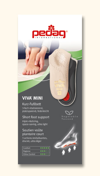 When it comes to well-being, pedag Viva® Mini does nothing by halves, because the short foot support naturally also takes care of the three sensitive points of the foot: the longitudinal arch, the heel and the ball of the foot. Goodbye foot pain, welcome well-being!