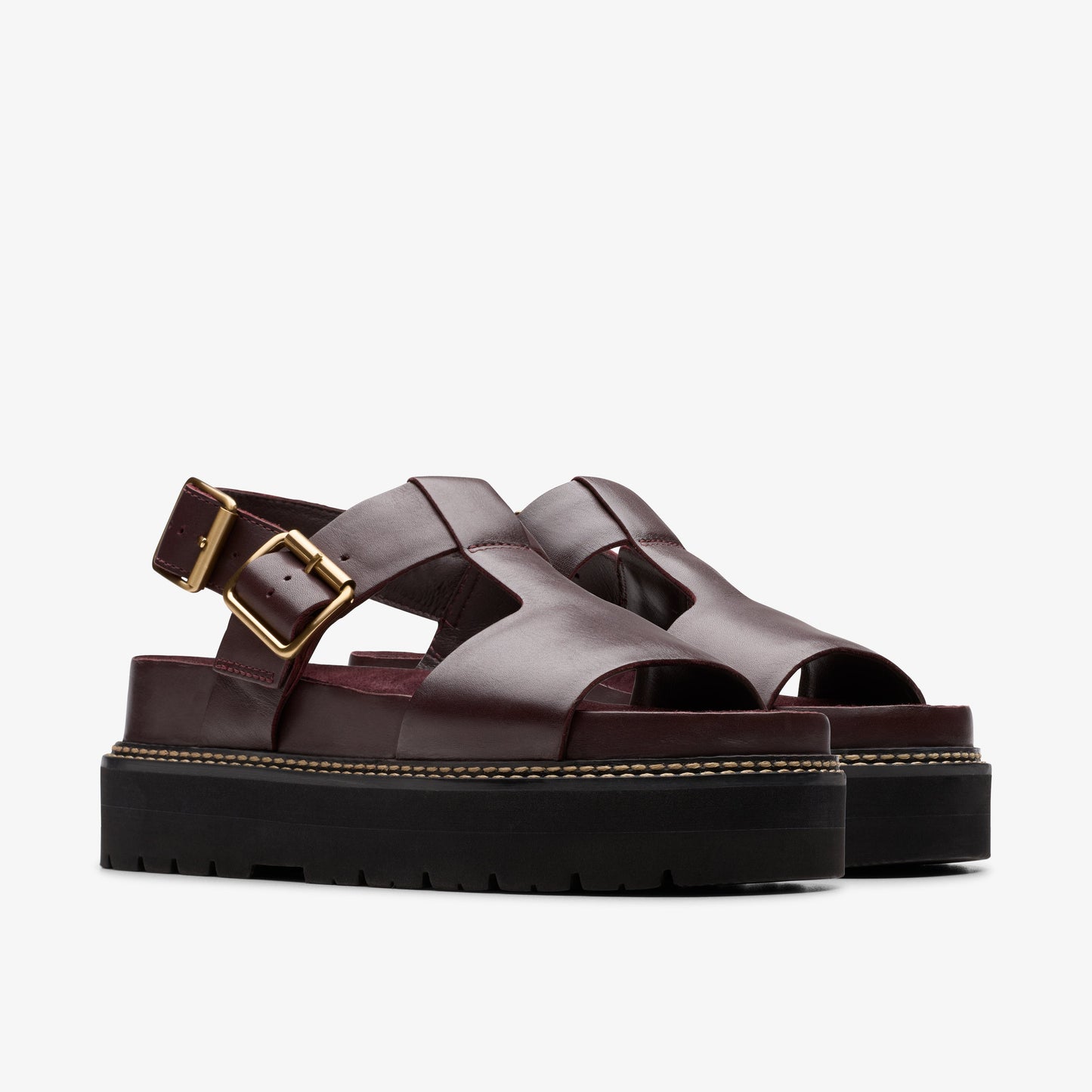 Keep your feet firmly on the ground with our Orianna Sky fashion-forward utility sandal, for Summer 2025. A premium leather upper in a rich wine color is paired with our pillow-soft Contour Cushion footbed and a chunky lugged sole that remains super lightweight thanks to aerated EVA. Complete with double-stitched trim and metal hardware to enhance its handcrafted look and feel.