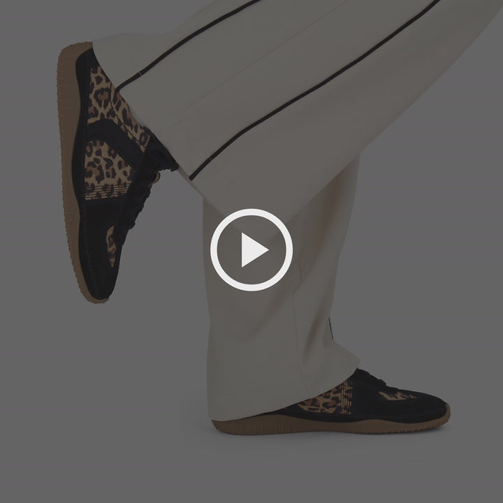 - Rico ante con estampado de leopardo, cuero suave y parte superior de nobuk con detalles de costura elaborados