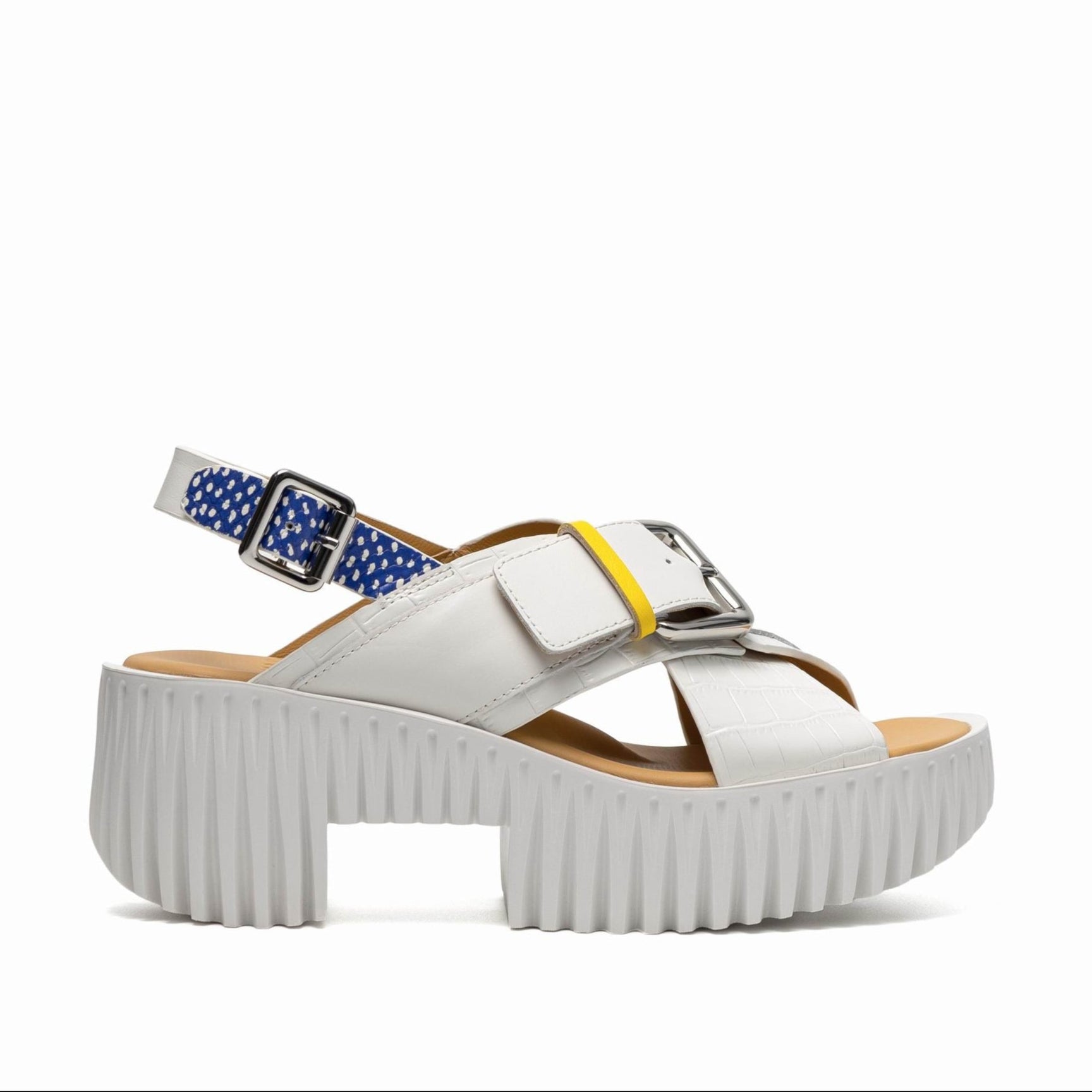 The wide cross-strap sandal features understated silhouettes with playful detailing. Bright pops of color, paired with bold metallic buckles, allow the pair to fit for both a dressy and casual occasion.PRODUCT FEATURES