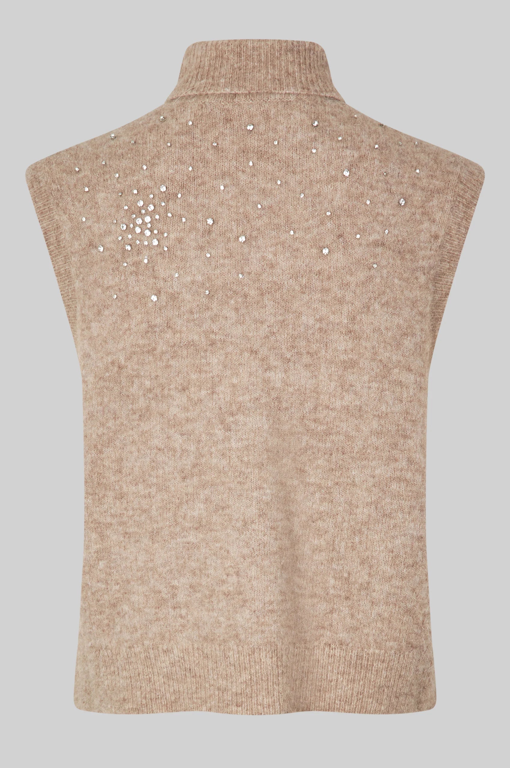 SECOND FEMALE | WOMEN SWEATER | SPARKLING KNIT VEST ROASTED CASHEW | BEIGE
