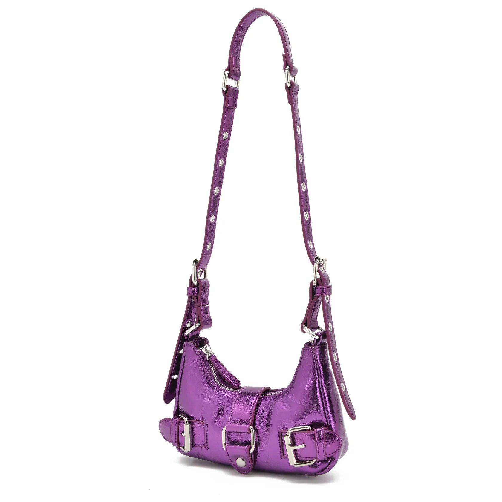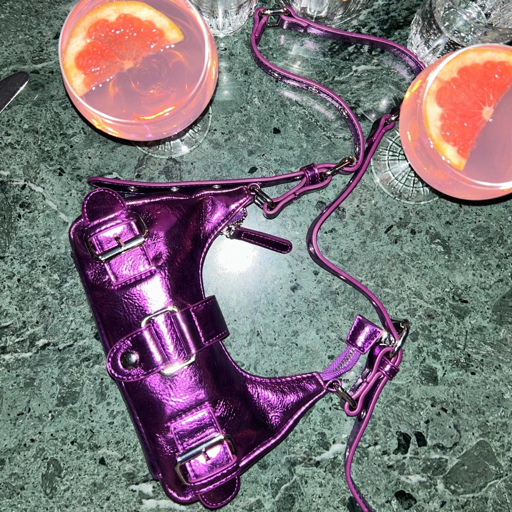 Palma in Cool is a small bag, with a compartment that closes with a zipper and a strap magnetically. The bag has two buckles outside.