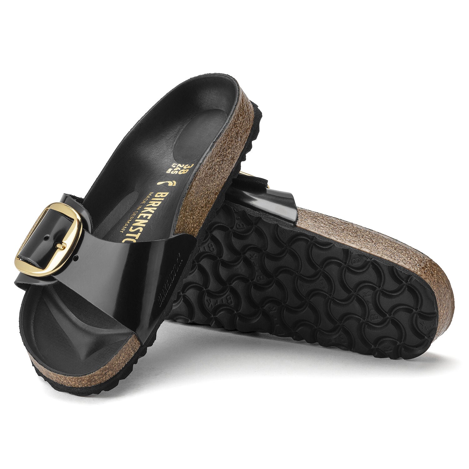 El BIRKENSTOCK Madrid es un auténtico clásico que deleita al mundo de la moda con su diseño minimalista. La versión Big Buckle incorpora una elegante hebilla grande. La plantilla semiexquisita está totalmente forrada de suave piel de piumato, lo que la hace excepcionalmente cómoda. El empeine es de piel natural de alta calidad con un brillante revestimiento de charol.