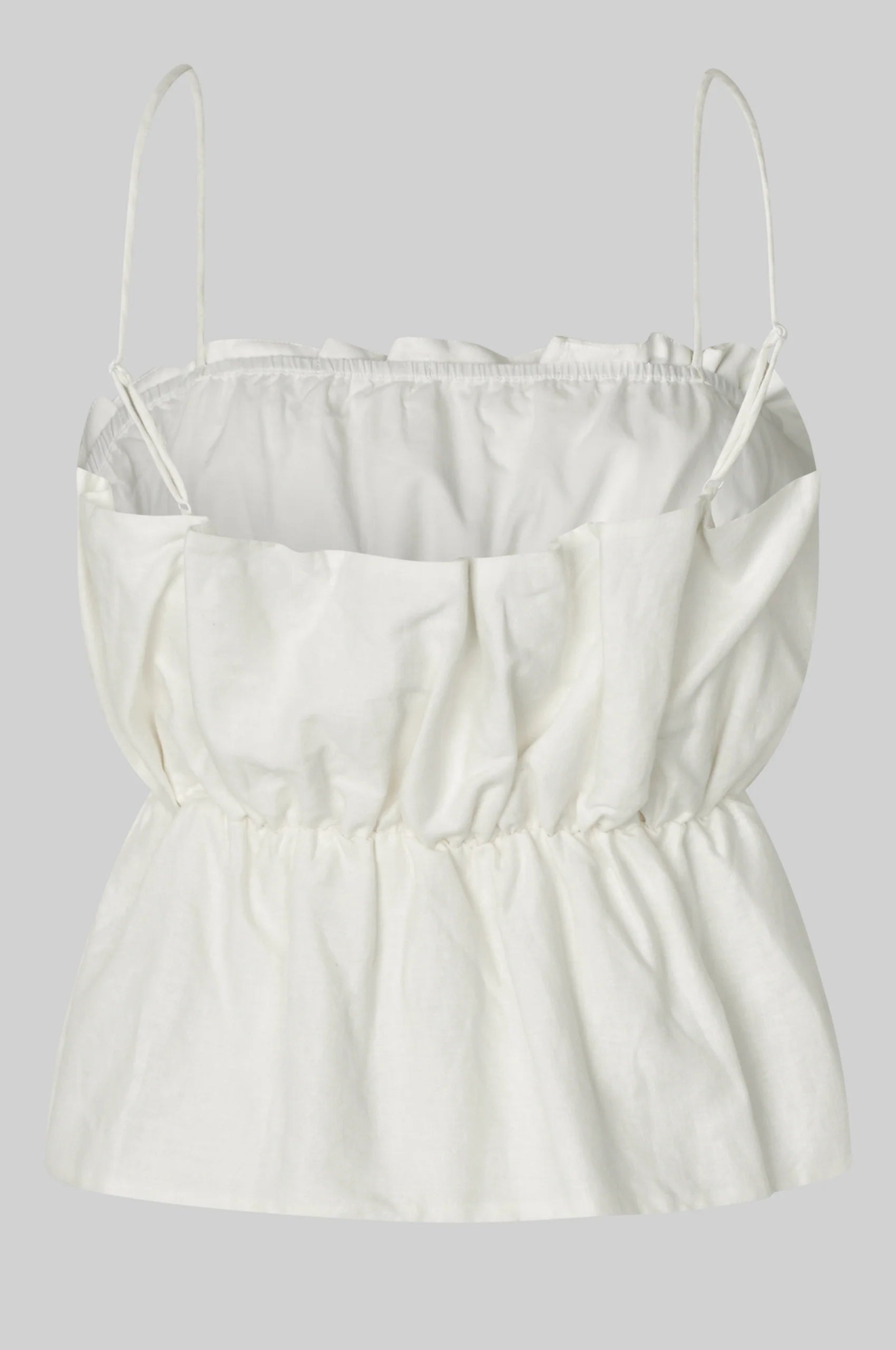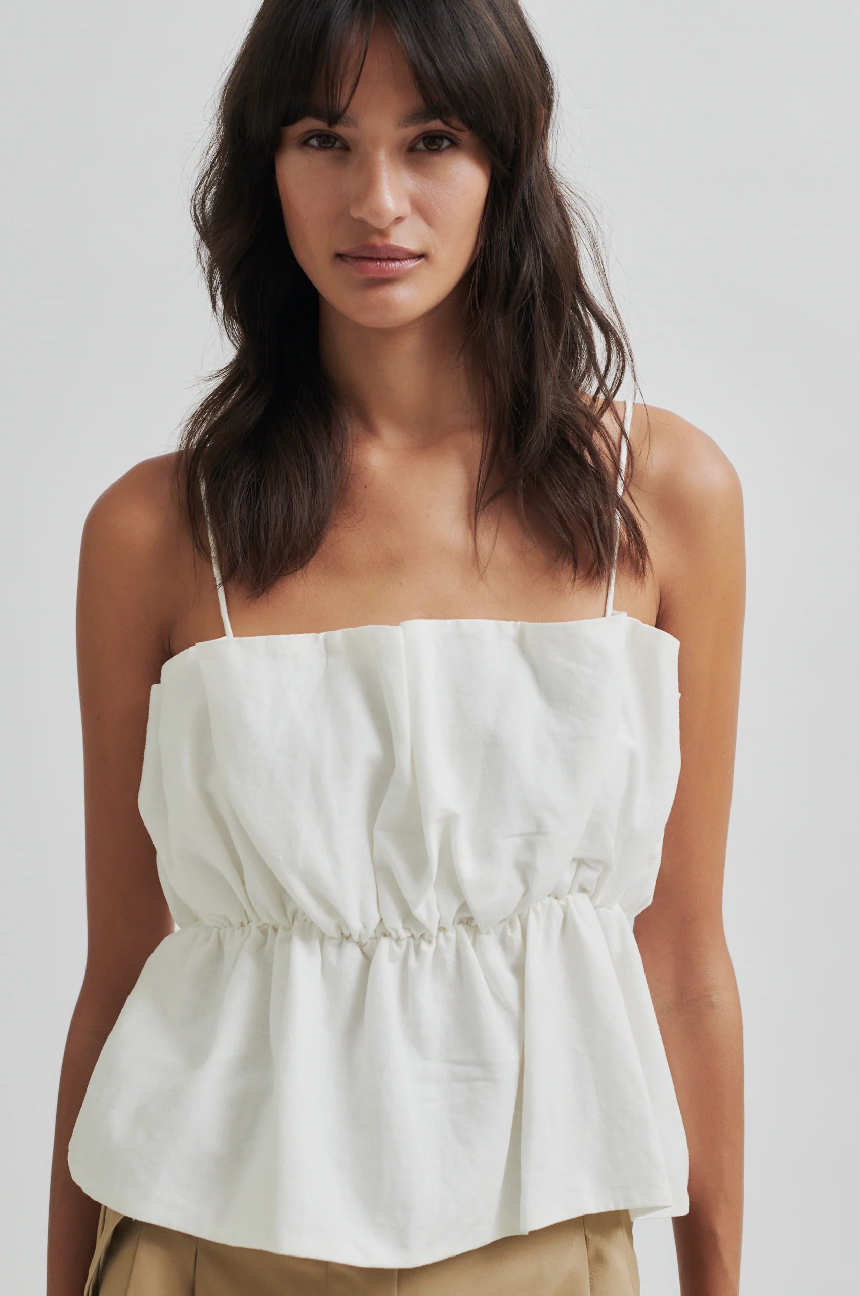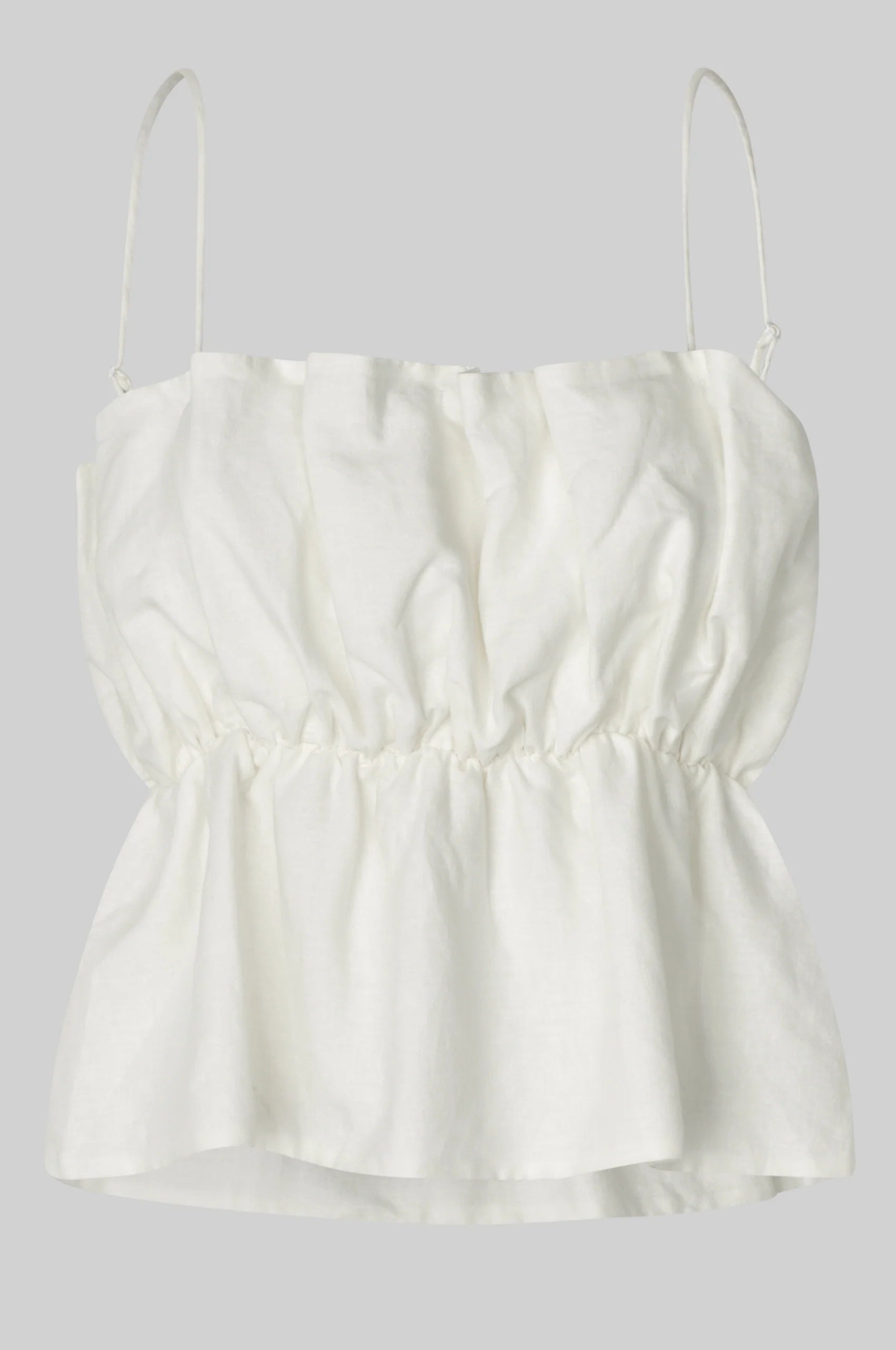 La parte superior está confeccionada en una suave mezcla de lino. Con tirantes finos ajustables y dobladillo superior y cintura elásticos que crean un efecto estructurado. Corte ajustado.