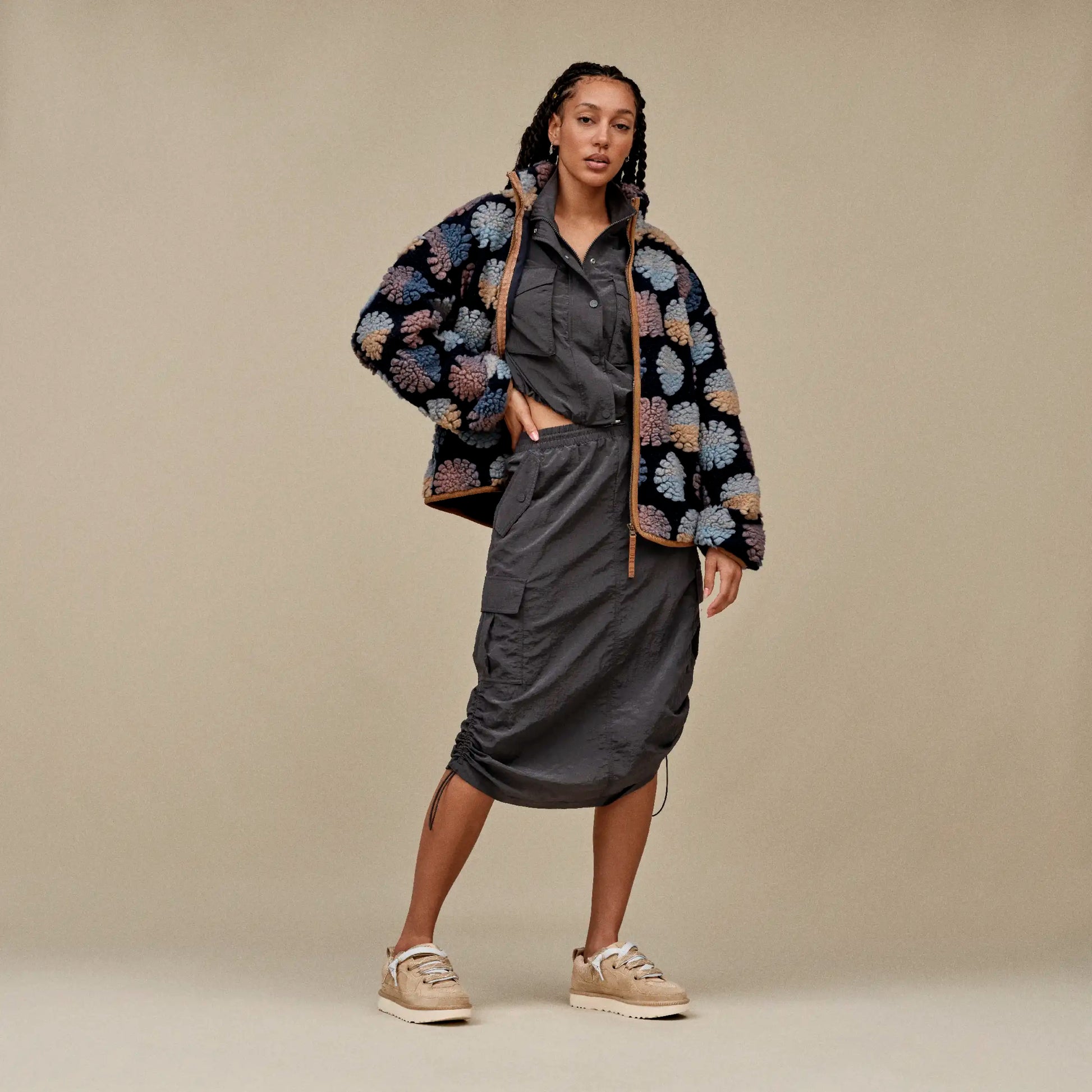 - Forro: Malla de poliéster (55 % poliéster modificado con carbón vegetal, 45 % poliéster normal) y UGGplush™ de 10 mm (60 % lana reciclada y 40 % lyocell TENCEL™)
