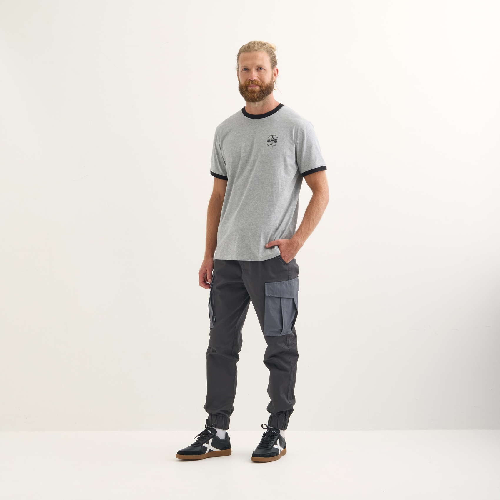 Camiseta retro estampada en manga corta y cuello redondo, de corte regular y estilo casual. Hecha de algodón orgánico tintado en prenda que resalta nuestro compromiso con la sostenibilidad y le otorga un aspecto vintage y desenfadado.