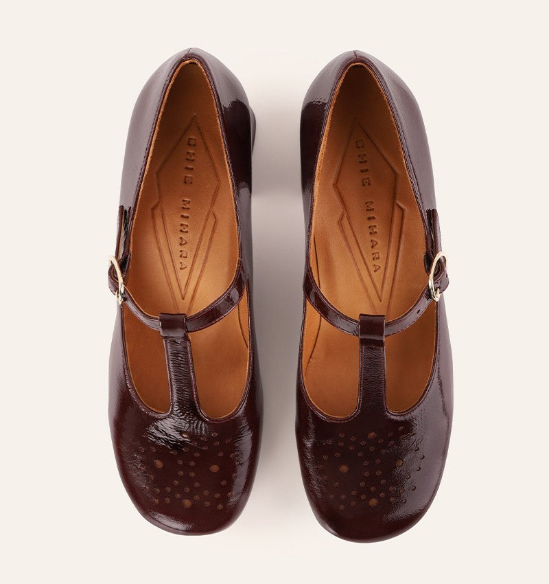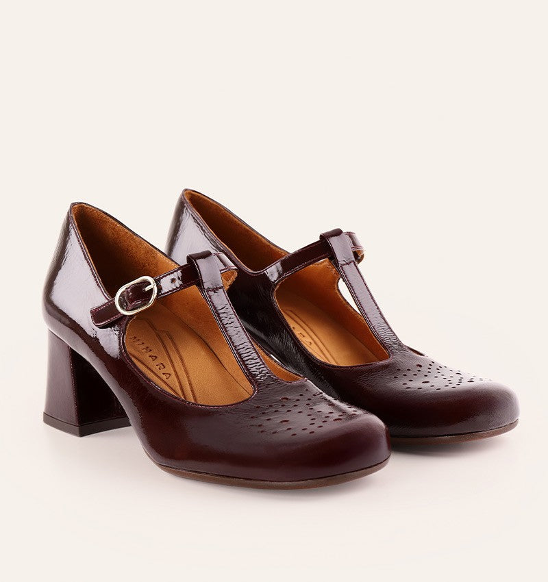 Las merceditas Chie Mihara Mokasi destacan por su diseño elegante y femenino en piel con lámina efecto charol, aportando un acabado sofisticado en un tono burdeos intenso. Con un tacón medio de 4,5 cm, resultan cómodas para el uso diario y aportan un extra de altura sin renunciar al confort. El forro de piel suave y la suela de cuero con pieza de goma antideslizante garantizan comodidad y seguridad en cada paso. El cierre con hebilla completa este modelo clásico y atemporal, ideal para realzar cualquier look.