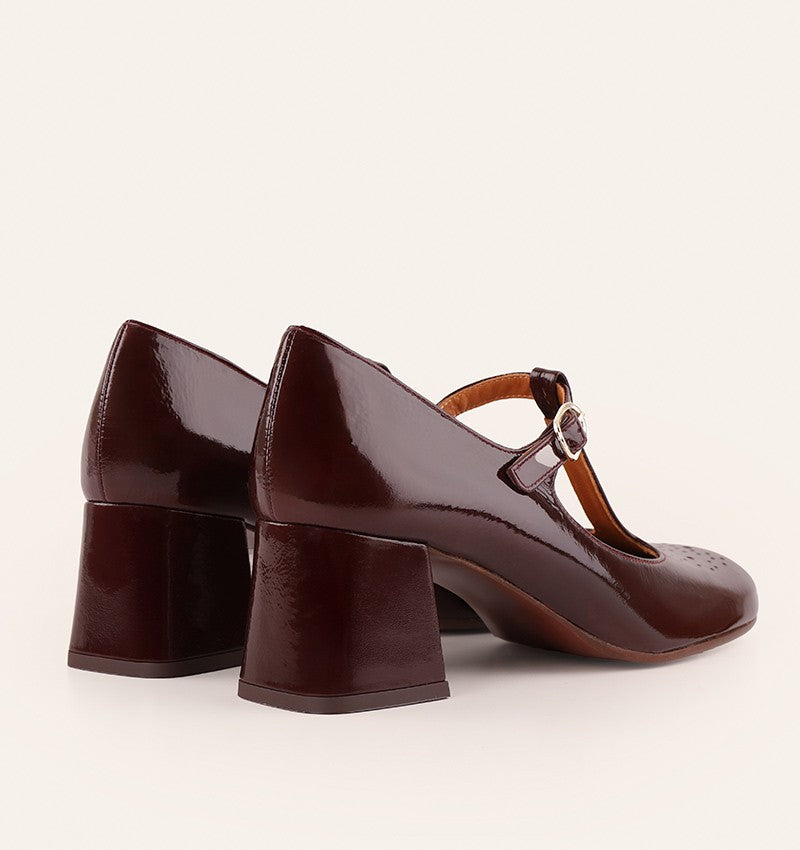 Merceditas Chie Mihara Mokasi en piel burdeos efecto charol con tacón medio