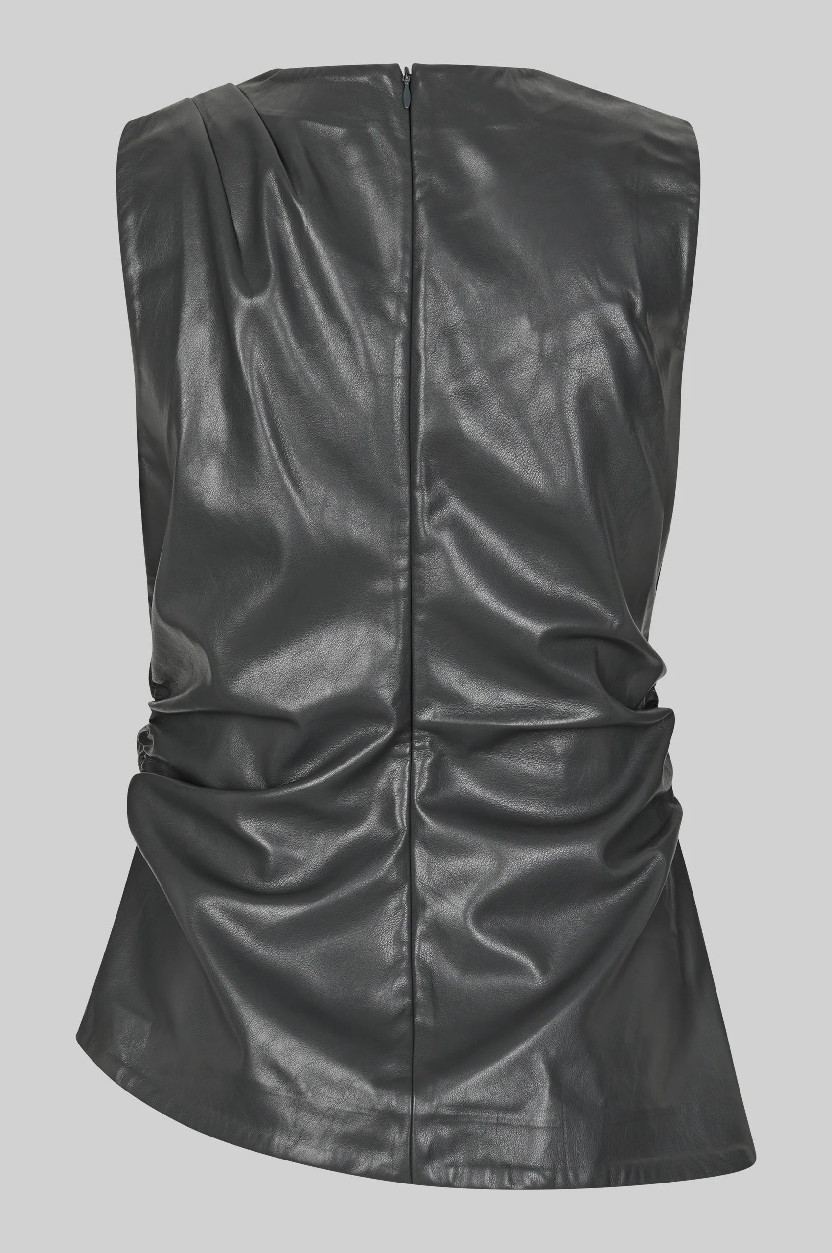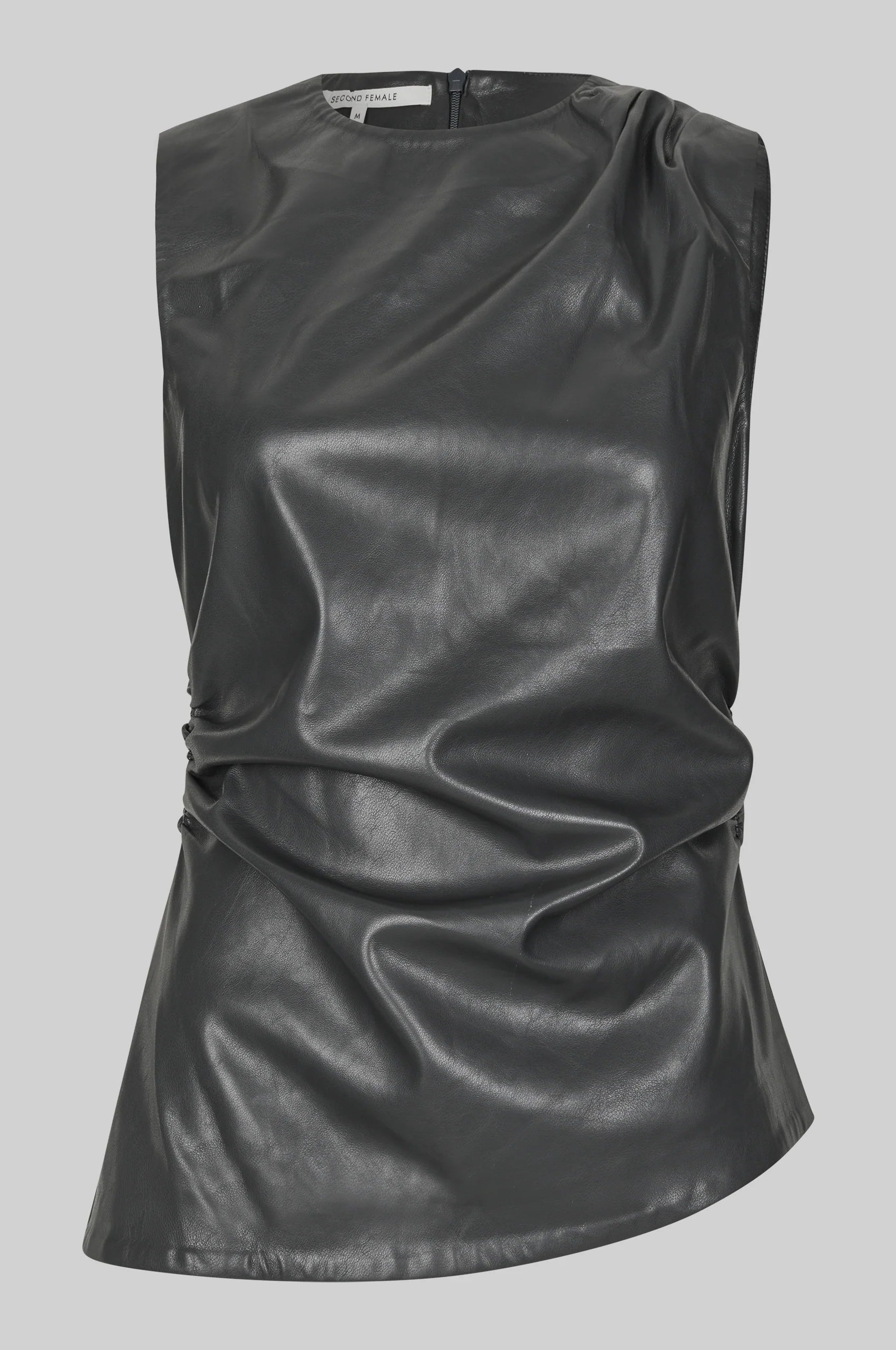 Blusa sin mangas de polipiel Second Female. Confeccionada en polipiel lisa. Cuello redondo y cierre de cremallera en la espalda. Pliegues en un hombro y costura fruncida en un lateral. Totalmente forrada. Corte entallado.CARACTERÍSTICAS DEL PRODUCTO