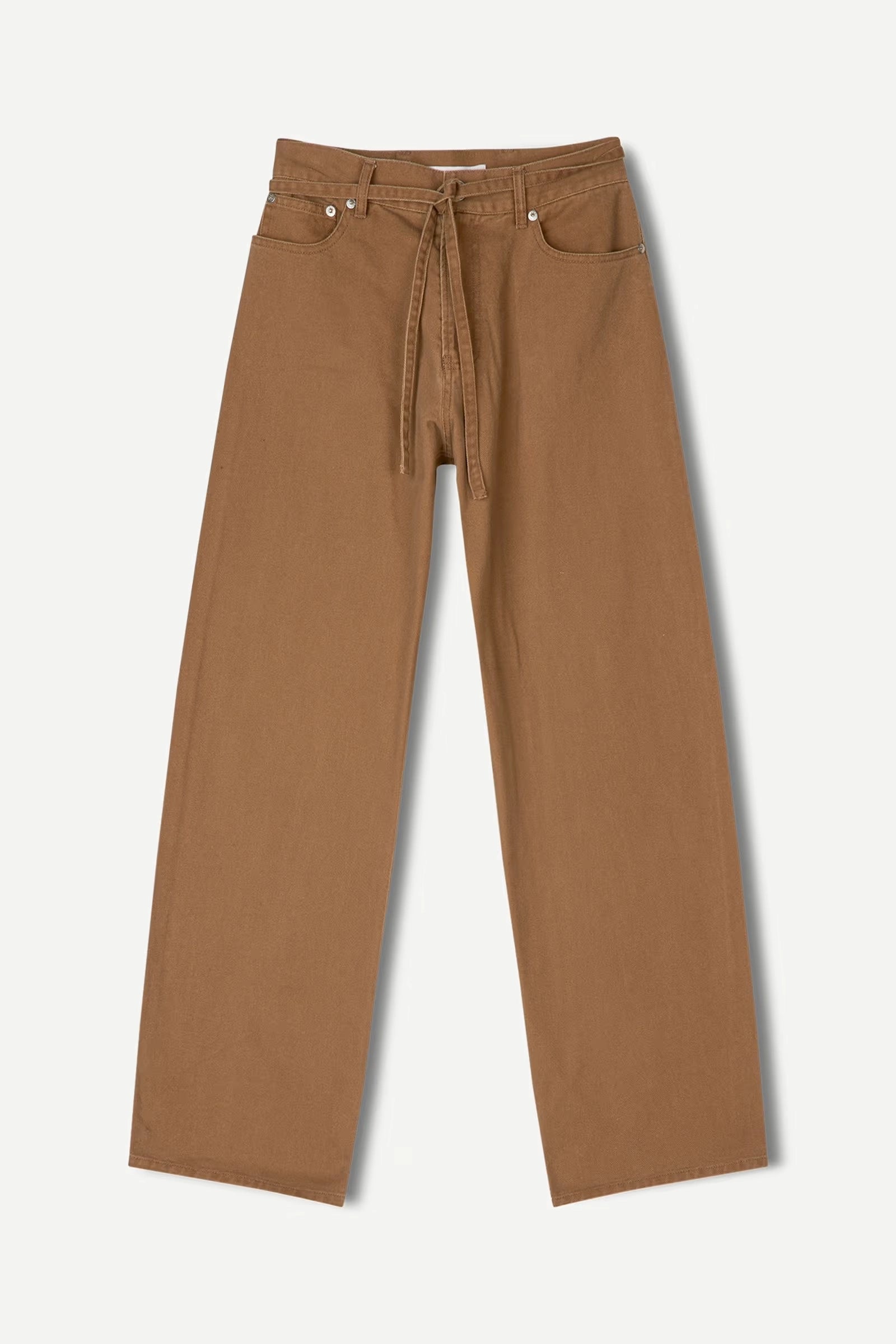 Los Saharper Trousers Washed Otter de Samsoe Samsoe son unos pantalones de talle medio con corte holgado y pierna curva, diseñados para ofrecer comodidad y elegancia en igual medida. Su estructura de cinco bolsillos y el cierre con cremallera y botón aportan un toque clásico, mientras que el cinturón fino a juego realza la silueta de forma discreta. Confeccionados en 100% algodón orgánico, destacan por su tacto suave y su acabado lavado en tono marrón tierra, perfecto para un look relajado y sofisticado.