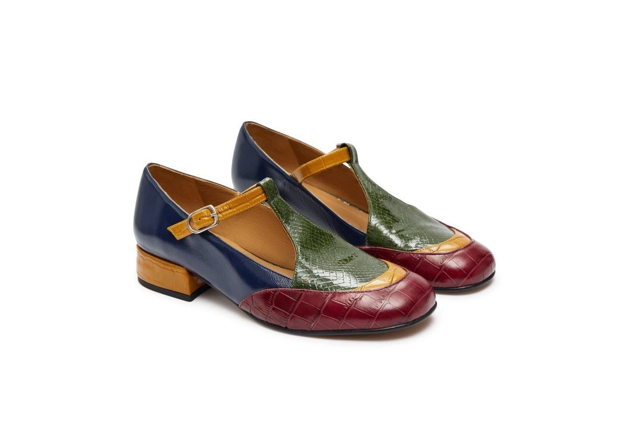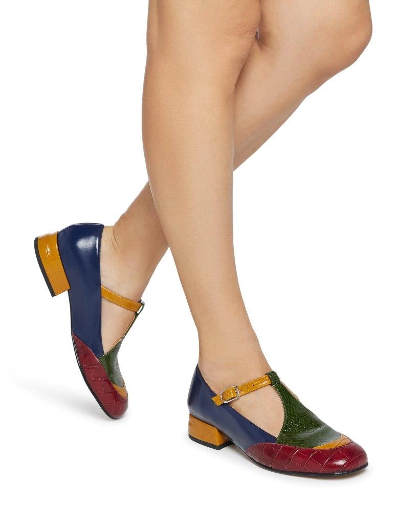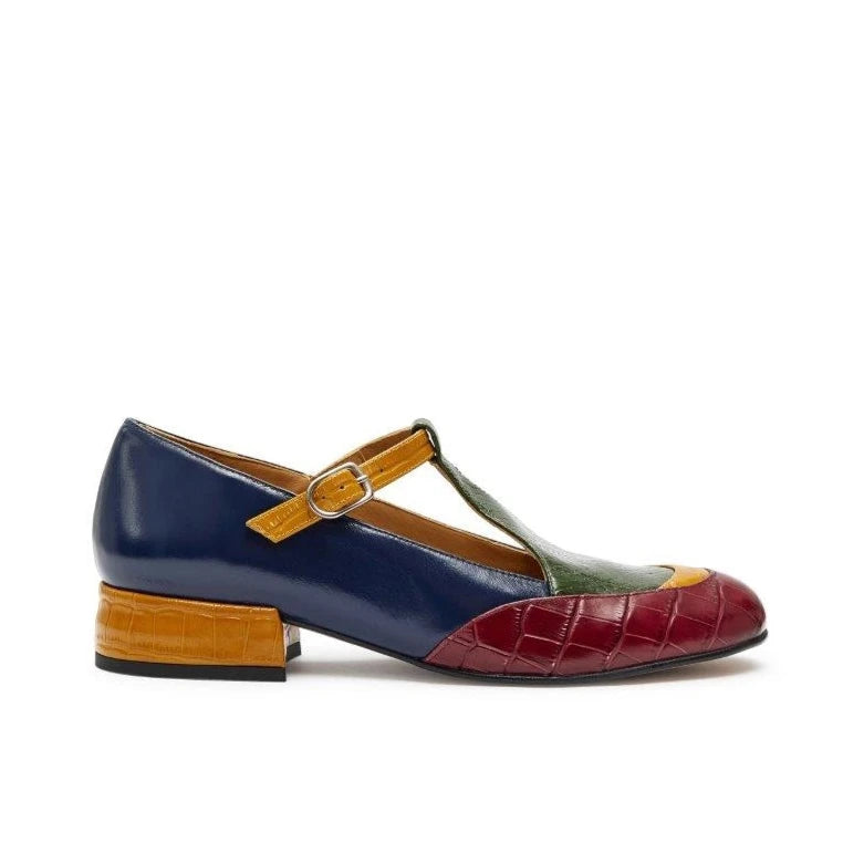 Scarpa Mary Jane Audley in pelle multicolore: esclusività e comfort con un tacco basso