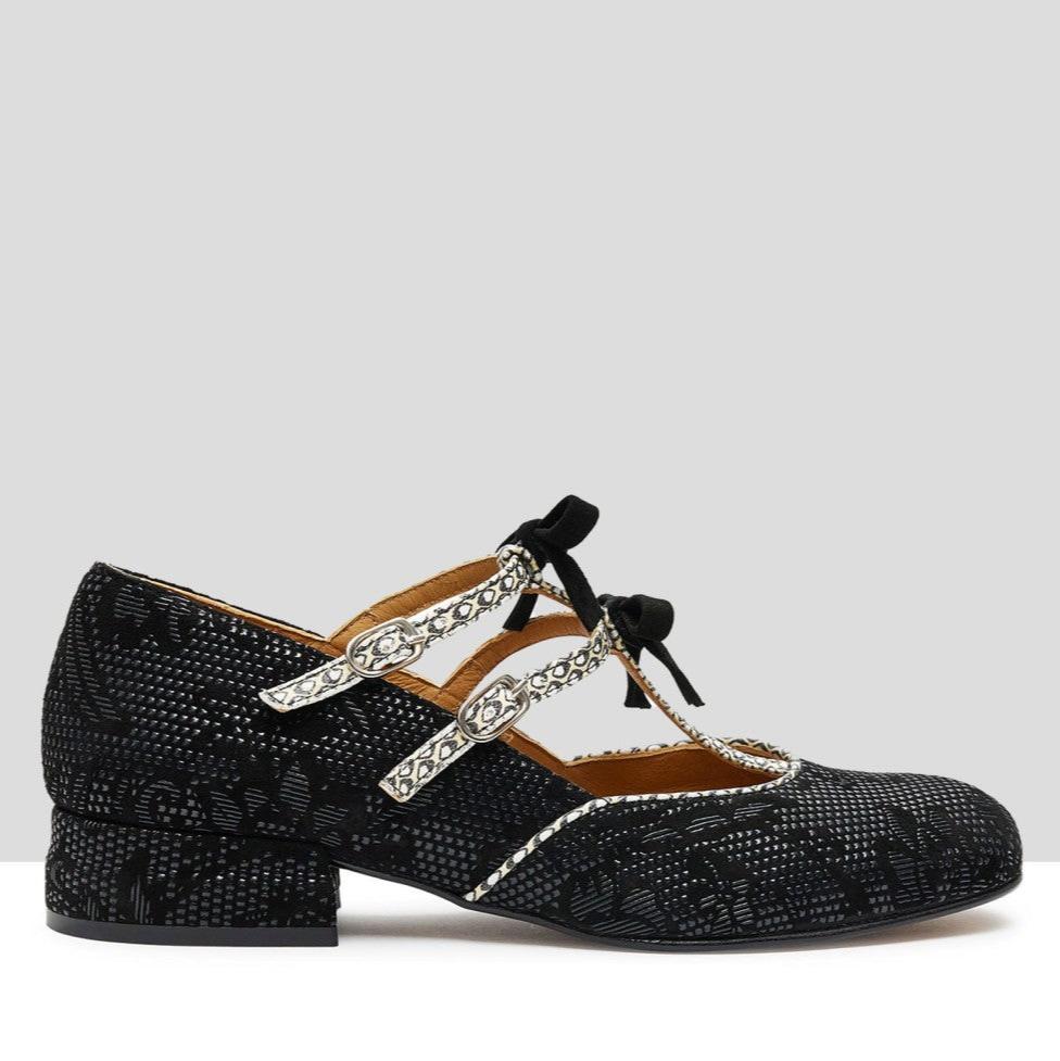 La scarpa Mary Jane Audley 22603 è un pezzo unico che unisce eleganza e raffinatezza. Realizzata in camoscio nero con stampa floreale, questo modello si distingue per i dettagli in pelle goffrata beige sulla tomaia, che, insieme al cinturino regolabile e alla fibbia, garantiscono una vestibilità perfetta alla caviglia. I due fiocchi in camoscio nero aggiungono un tocco esclusivo a questa scarpa. La punta arrotondata e il tacco basso di 2,5 cm garantiscono il massimo comfort, rendendo questo modello la scelta ideale per l'uso quotidiano o per le occasioni speciali. Senti l'unicità di Audley a ogni passo!