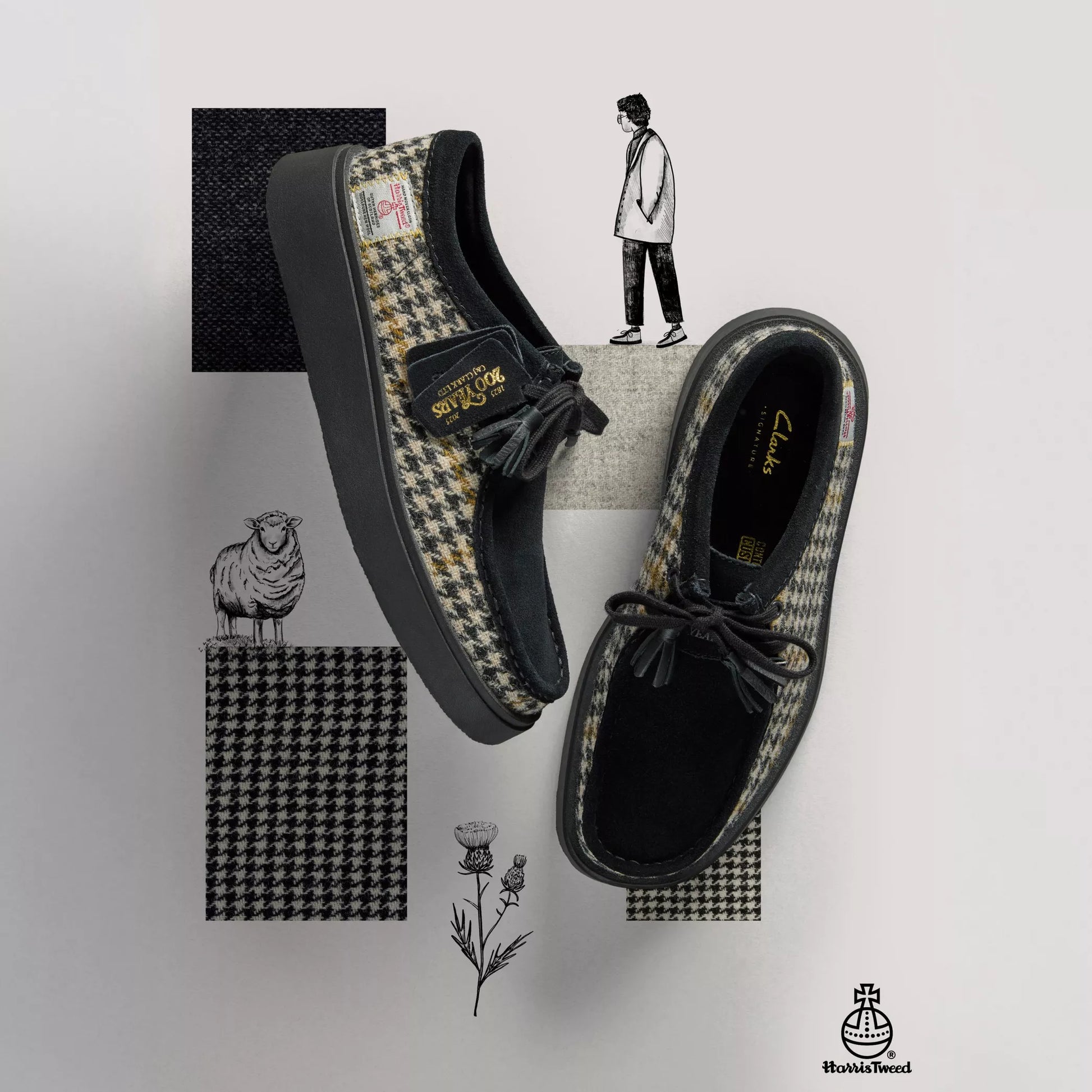 - Empeines de Harris Tweed premium en negro y blanco