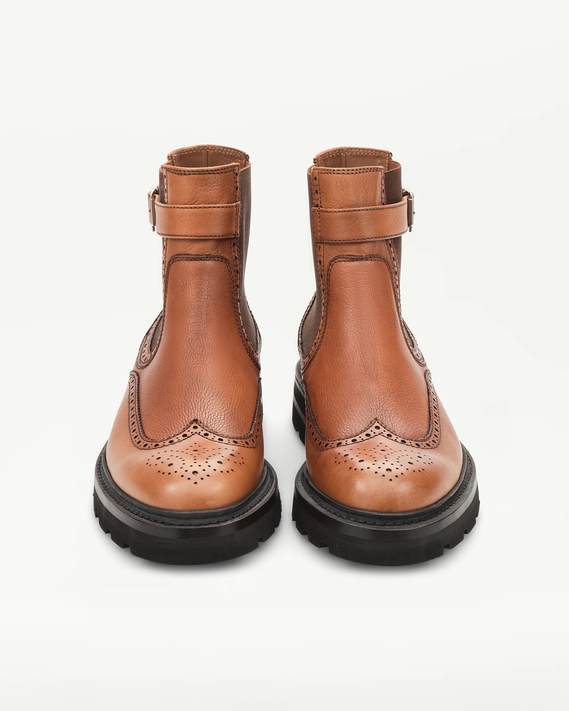 Descubre nuestros botines de la colección Weston de Lottusse. Un aspecto clásico no formal con gusto urbano. Espíritu de zapato brogue construido en una suela ligera voluminosa, para una apariencia clásica actualizada. Este elegante calzado destaca por su fabricación en la técnica Goodyear Welted, ADN de la marca, por su piso de eva microporoso, ultraligero, con entretapa y vira de cuero cosida, teñida a mano y, por supuesto, por su confección en piel de extraordinaria suavidad con una estructura y carácter fuerte resultante del curtido 100% vegetal. Se caracteriza por tener un aspecto de acabado vintage conseguido mediante un proceso que se llama "lavado de la piel" y consigue ser la opción perfecta para cualquier atuendo y ocasión.