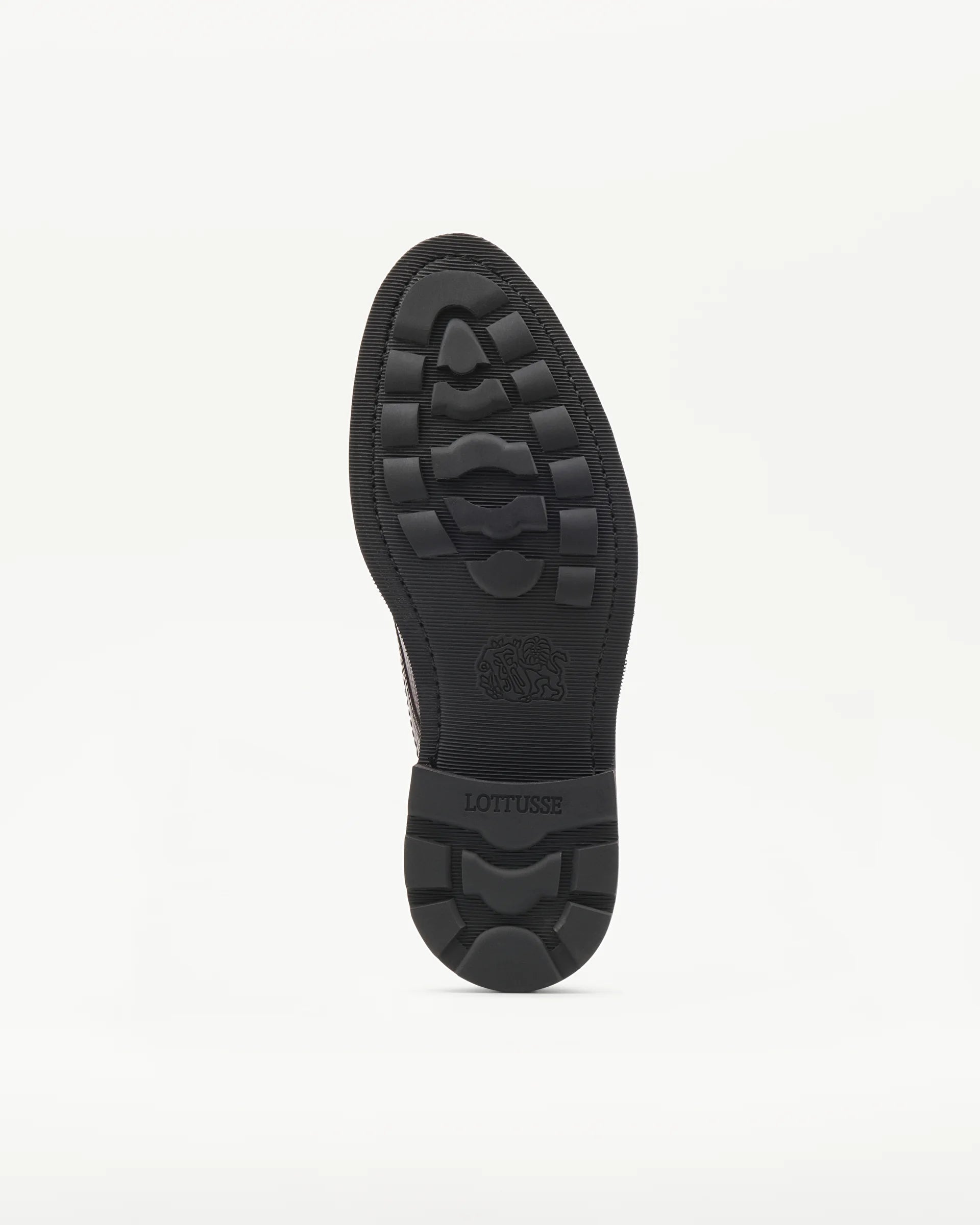 Los Derby de la línea Prime de Lottusse combinan elegancia clásica y funcionalidad. elaborados con meticulosidad artesanal, destacan por su piel grabada, teñida y acabado a mano en puntas y talón. Este calzado está fabricado con la técnica Goodyear Welted para mayor durabilidad, presentan una suela de goma personalizada con detalles en cuero cosido a mano y un diseño delgado al estilo inglés que asegura confort y un look sofisticado, perfecto para el uso diario en ambientes formales de negocios.