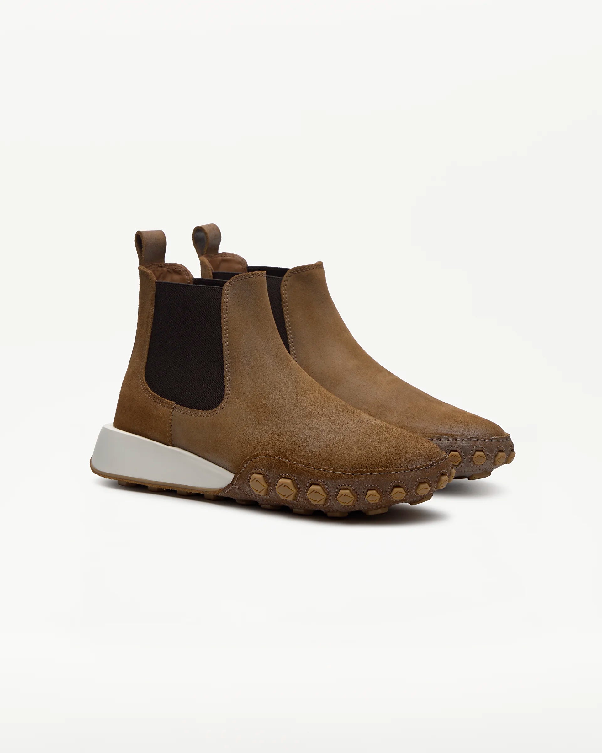 Estas Sneakers estilo Chelsea boot deportivo de la línea Nauta es una muestra perfecta de nuestra alma artesanal. Este híbrido entre tradición y técnicas de fabricación contemporáneas está construido con nuestra original "Hull Construction", que garantiza una estructura sólida y cómoda al mismo tiempo. Estas Sneakers tipo botín presentan una textura afelpada de aspecto aterciopelado que resalta la elegancia de un look sport clásico. La suela de goma y el tacón bloqu brindan estabilidad y confort para el día a día. El elástico lateral asegura un ajuste perfecto, permitiendo mayor flexibilidad en cada paso. Este modelo es ideal para quienes buscan una combinación de diseño moderno y el sello único de nuestra artesanía.