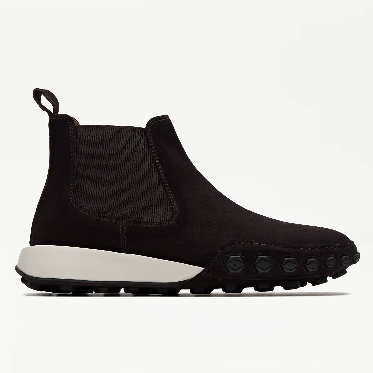 Estas Sneakers estilo Chelsea boot deportivo de la línea Nauta es una muestra perfecta de nuestra alma artesanal. Este híbrido entre tradición y técnicas de fabricación contemporáneas está construido con nuestra original "Hull Construction", que garantiza una estructura sólida y cómoda al mismo tiempo. Estas Sneakers tipo botín presentan una textura afelpada de aspecto aterciopelado que resalta la elegancia de un look sport clásico. La suela de goma y el tacón bloqu brindan estabilidad y confort para el día a día. El elástico lateral asegura un ajuste perfecto, permitiendo mayor flexibilidad en cada paso. Este modelo es ideal para quienes buscan una combinación de diseño moderno y el sello único de nuestra artesanía.