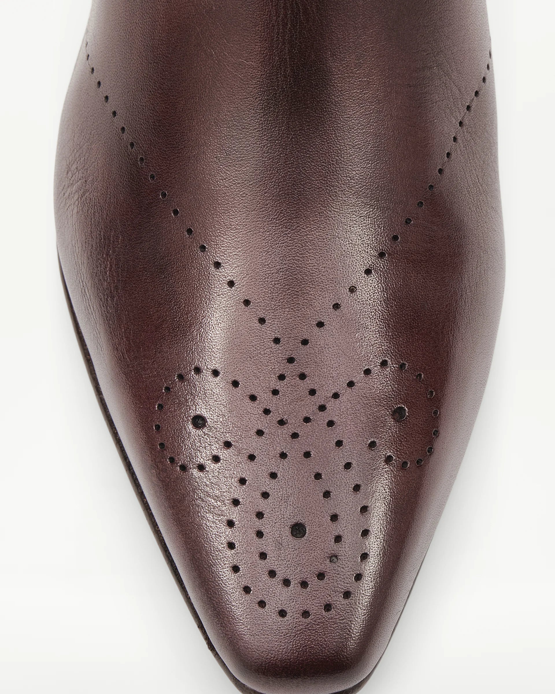 Botines de la línea Smithson de Lottusse. Este modelo presenta un botín, meticulosamente confeccionado en piel de alta calidad, que incorpora detalles trabajados a mano y un cierre elástico para asegurar una impecable comodidad. La piel, tratada con la técnica de acabado touche, confiere a la pieza una textura única y un brillo sutil. El diseño se completa con un perfil refinado al estilo jourdan y un tacón medio tipo kitten, elevando este calzado con un toque de sofisticación y distinción.