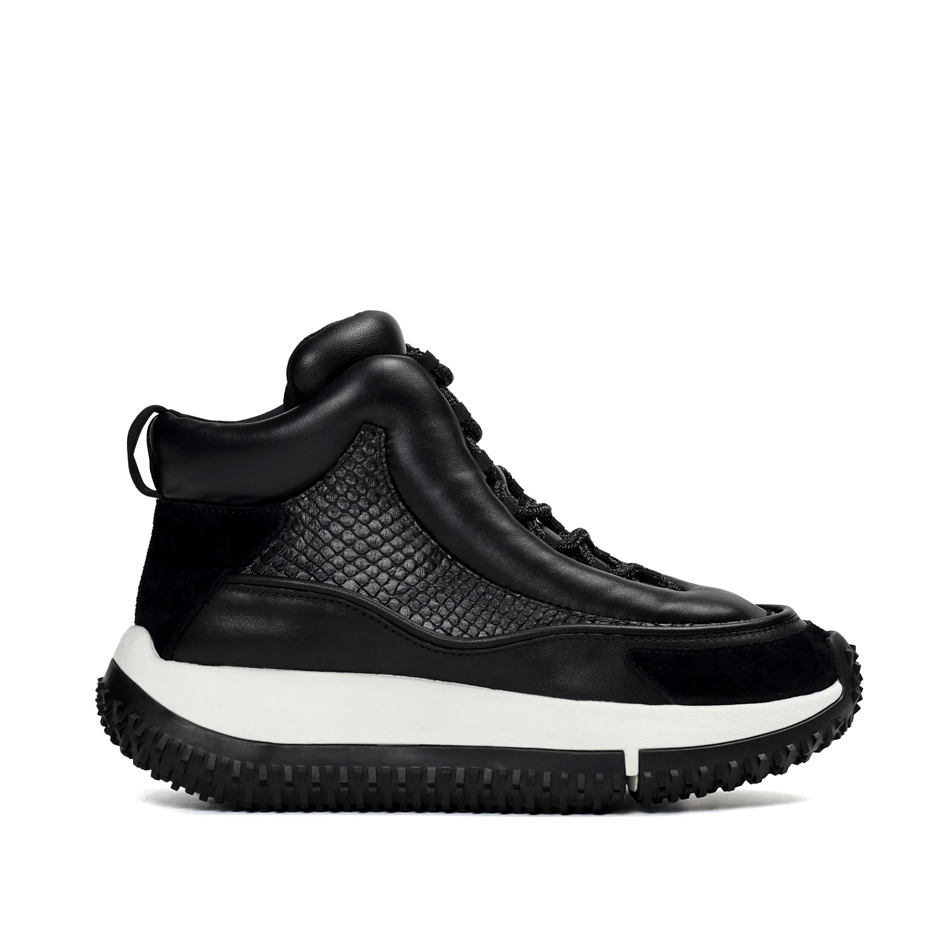 • Parte superior: piel de oveja, piel con estampado de serpiente y ante