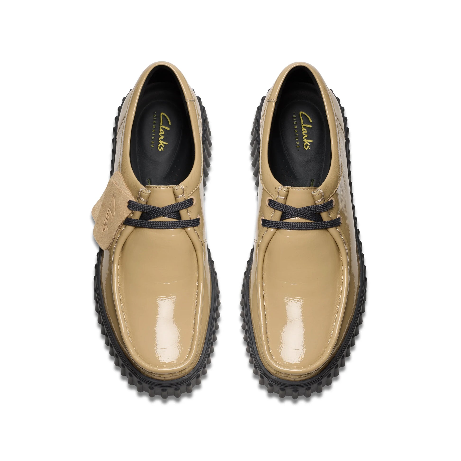 Botki Torhill Bee marki CLARKS to współczesna interpretacja inspirowanego latami 90. modelu, będącego częścią naszego kultowego profilu Big Gripper. Elegancki, sznurowany model, nawiązujący do krzywizn naszego słynnego modelu Wallabee, charakteryzuje się misternymi detalami i estetyką ręcznego wykonania. Wykończenie z najwyższej jakości beżowej lakierowanej skóry i pasek w kształcie litery T zapewniają indywidualne dopasowanie, a lekka, rowkowana podeszwa zewnętrzna zapewnia optymalną przyczepność.