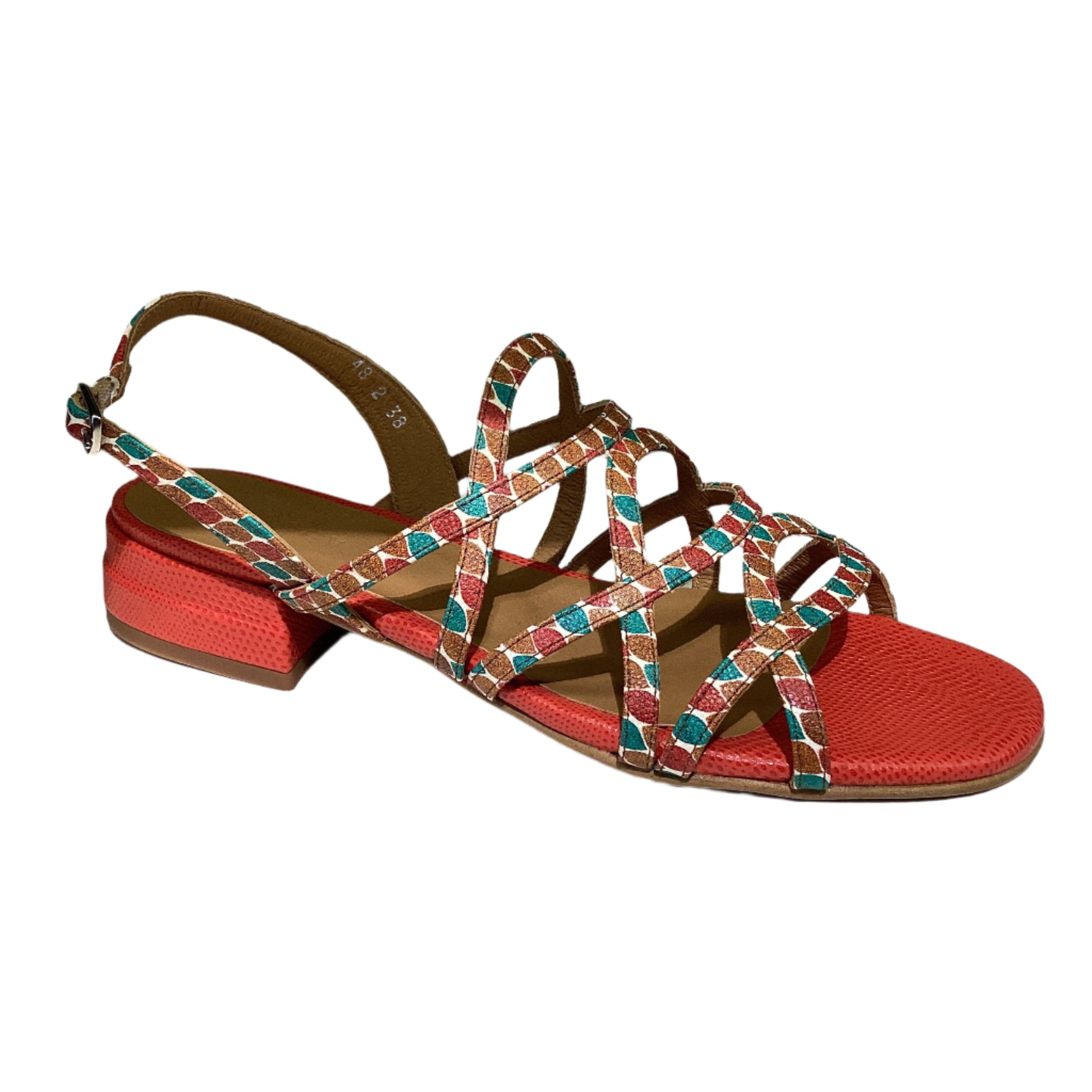 Estas sandalias de tacón bajo destacan por su diseño artesanal y lleno de color. Con tiras finas entrecruzadas en tonos rojizos, turquesa y dorado, aportan un toque bohemio y elegante ideal para el verano. El tacón cuadrado bajo proporciona comodidad y estabilidad, mientras que la suela acolchada y el cierre trasero con hebilla garantizan un ajuste seguro. Perfectas para combinar con vestidos, faldas o pantalones fluidos, estas sandalias de estilo mediterráneo son la opción ideal para lucir con estilo en días cálidos, tanto en looks casuales como más sofisticados.