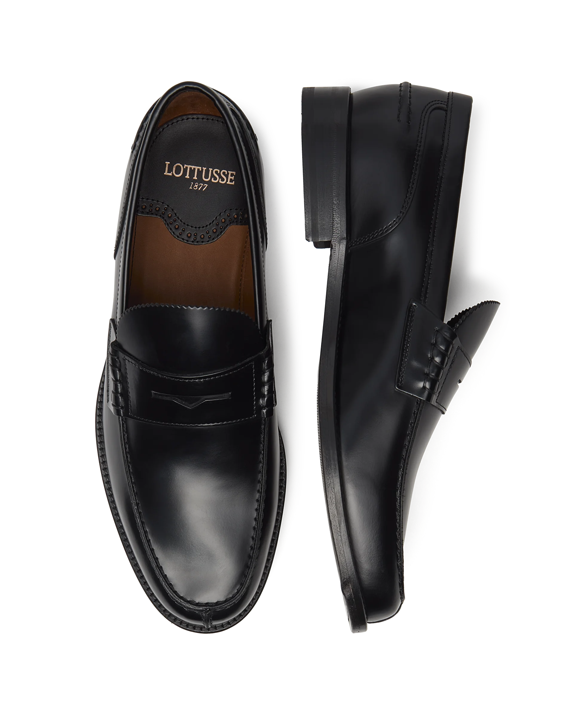 这款传统男士乐福鞋是 LOTTUSSE Daytona 系列的一部分。它们采用耐用、优质的小牛皮制成,表面柔软有光泽,舒适的一脚蹬设计方便穿脱。经典的黑色使其成为办公室或出席正式活动的完美之选。