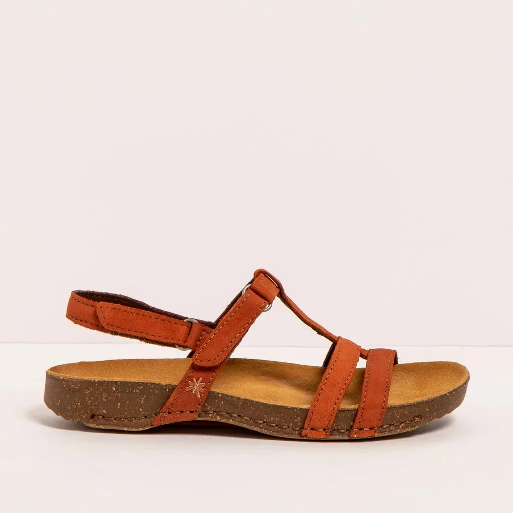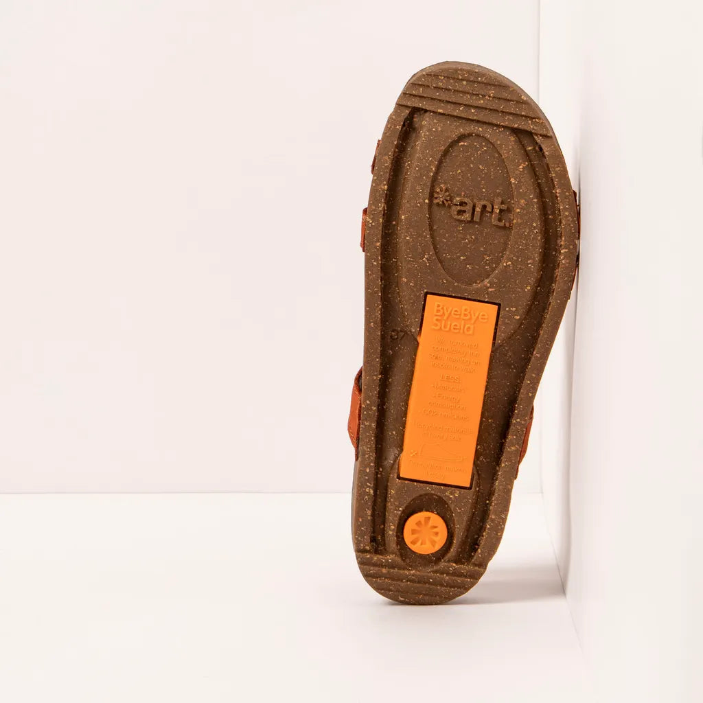 这款皮革凉鞋配有绑带和魔术贴。如果一切都与呼吸有关会怎样?人生短短十秒,你便会本能地呼吸。每天呼吸23,000次,我们皮肤上的每个毛孔都帮助我们笑得更多、消化更好、排毒、放松身心,这一切都从双脚开始:天然绒面革融入符合人体工学设计的鞋底。大胆实用的优雅设计,为数百万步提供极致舒适。穿上这款深橙色磨砂皮革凉鞋,尽情呼吸,尽情呼吸。