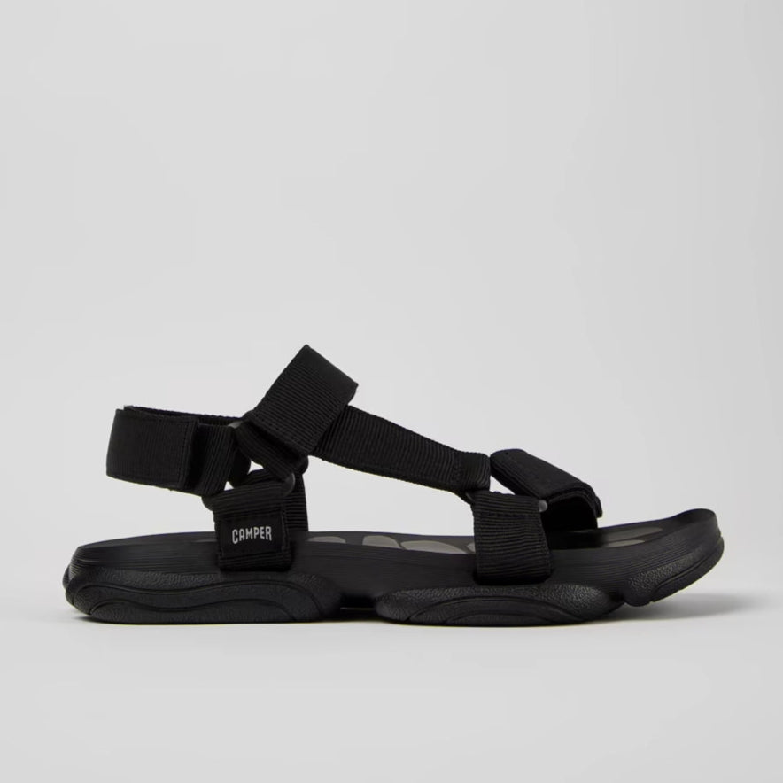 CAMPER Karst 凉鞋是追求舒适与环保的完美之选。这款男女通用的凉鞋采用黑色再生 PET 胶带制成,设计简约,配有自锁扣,确保舒适稳固的穿着体验。其XL EXTRALIGHT® 双通道 EVA 鞋底(20% 再生材料)轻盈耐用,同时其自然灵感源自喀斯特 (Karst) 的 DNA 使其成为明智的选择,其使用寿命结束时的组件均可拆卸和回收。