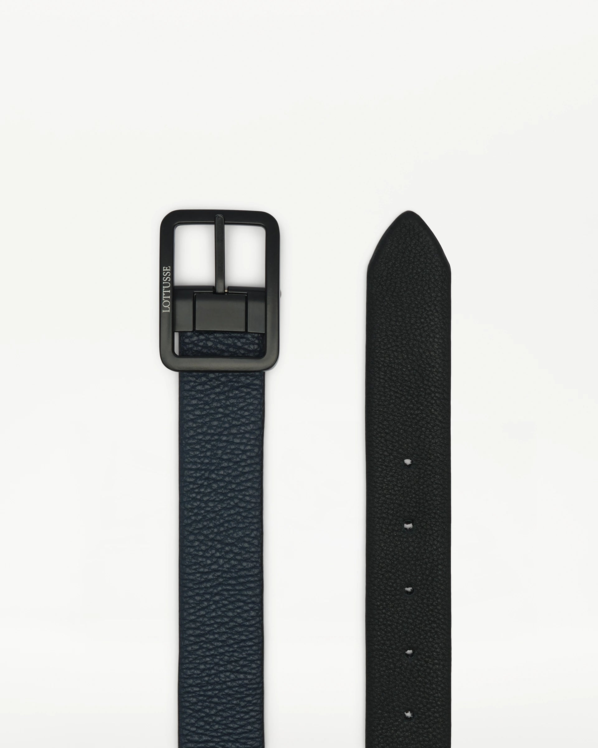 LOTTUSSE | CINTURONES | HOMBRE | CINTURÓN DE PIEL DE BECERRO MARRÓN/NEGRO AZUL MARINO | AZUL MARINO