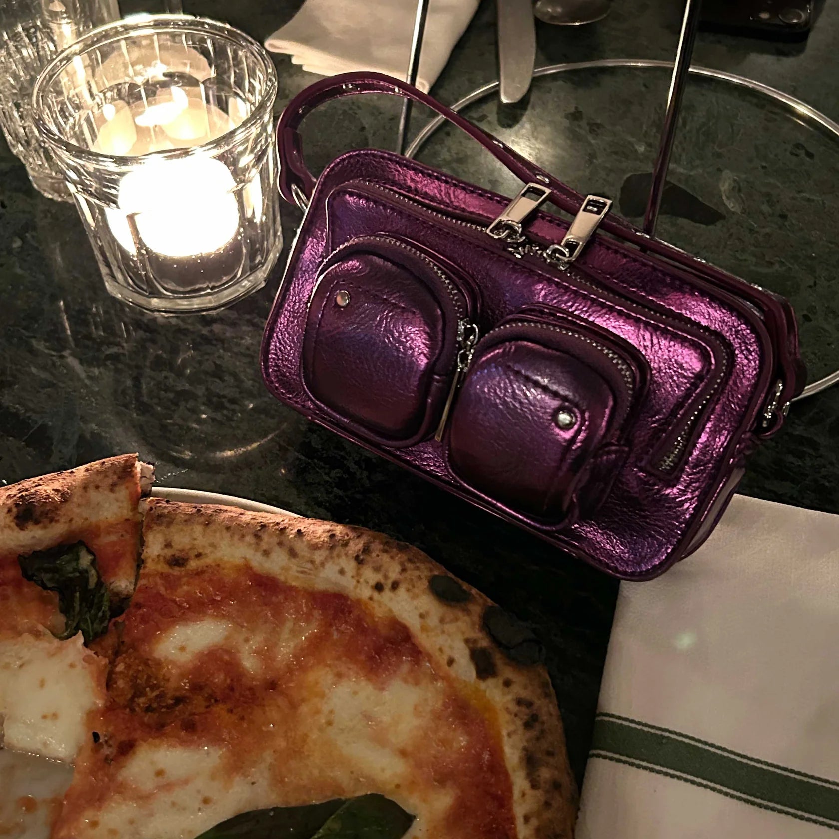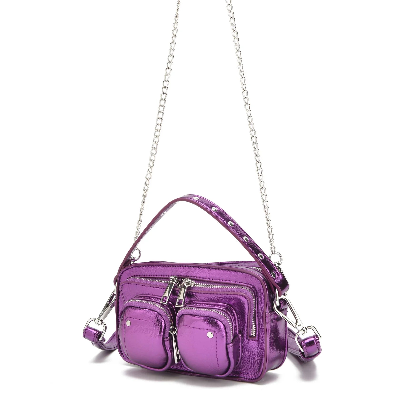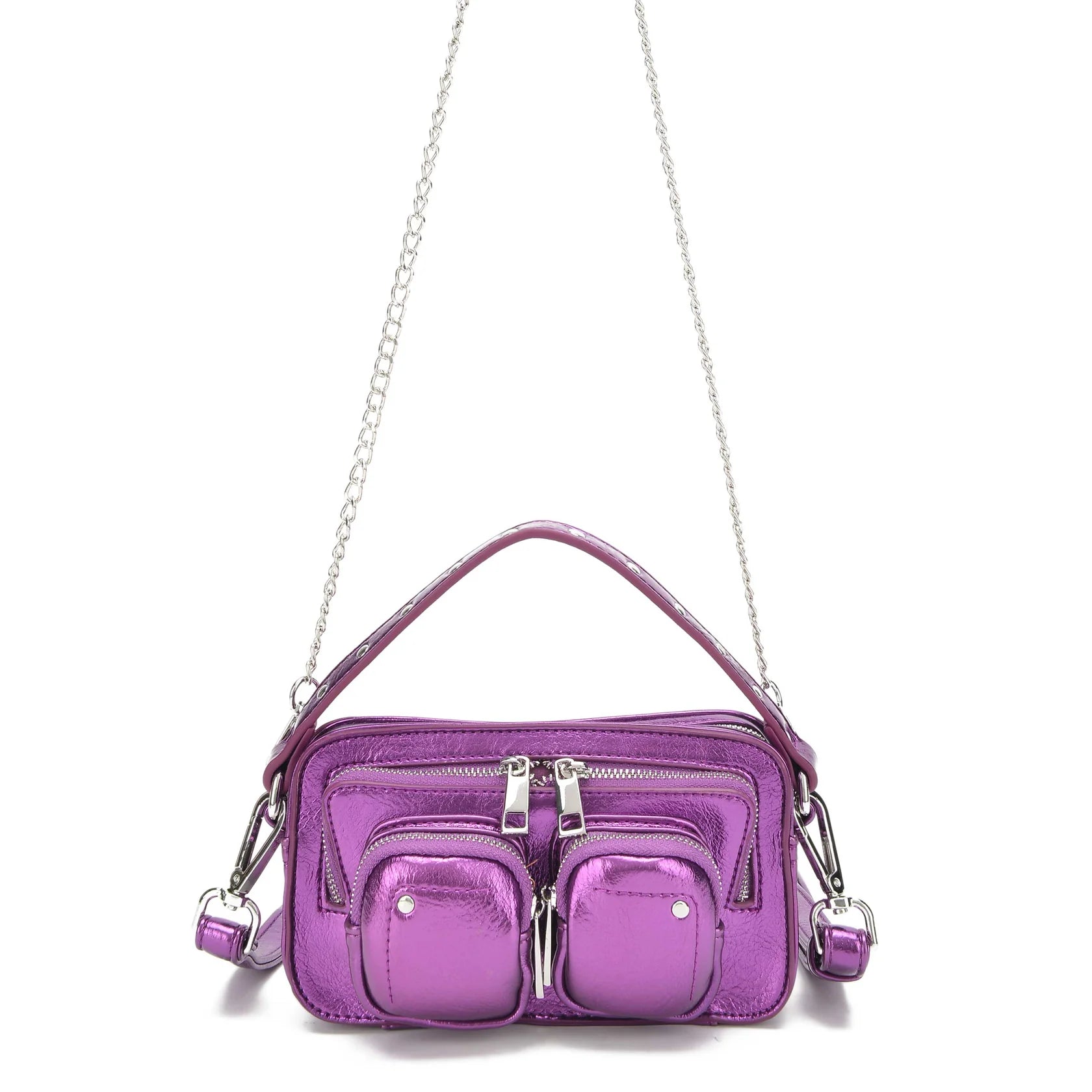Helena 包包采用明亮闪亮的设计。包包设有一个带拉链的主隔层和一个带拉链的内袋。包包配有链条和可调节肩带。链条和皮革肩带可拆卸。