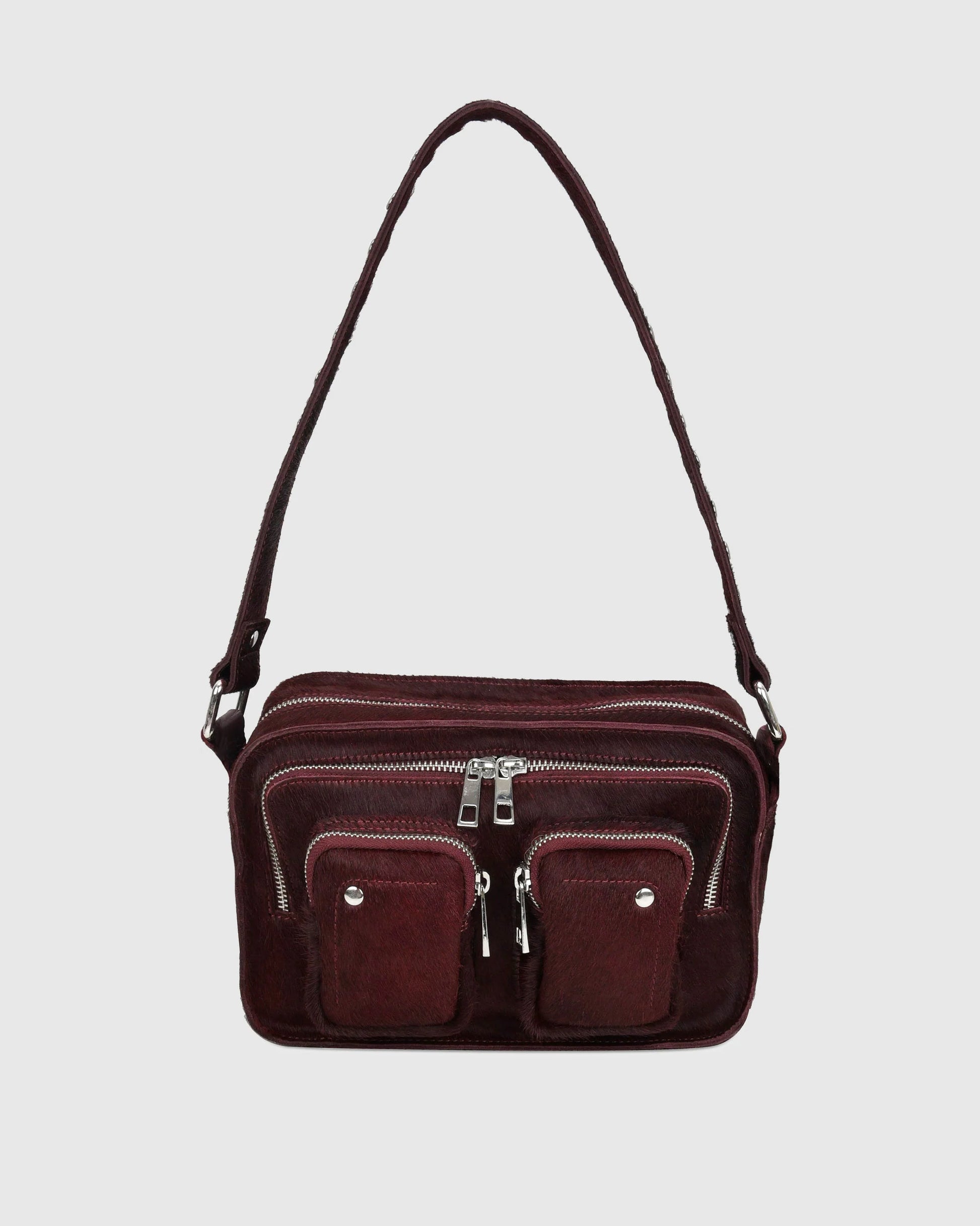 El Ellie Deluxe Bordeaux de Núnoo destaca por su color bordeaux y diseño funcional. Cuenta con un compartimento principal espacioso, un segundo compartimento más pequeño y dos bolsillos frontales con cierre de cremallera para mantener tus objetos organizados y seguros. Incluye una correa fija para llevarlo al hombro y una correa ajustable para usarlo cruzado, adaptándose a cualquier estilo y ocasión.