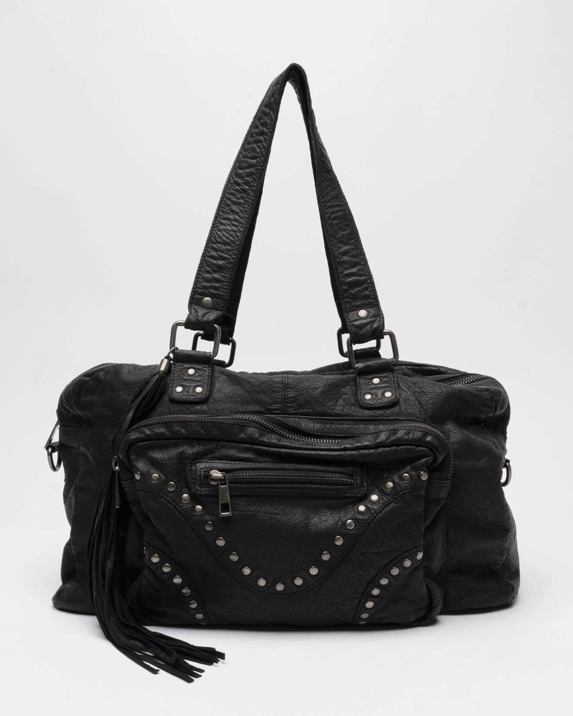 Bolso Núnoo Mille Rivet Washed Black con herrajes Antique Silver