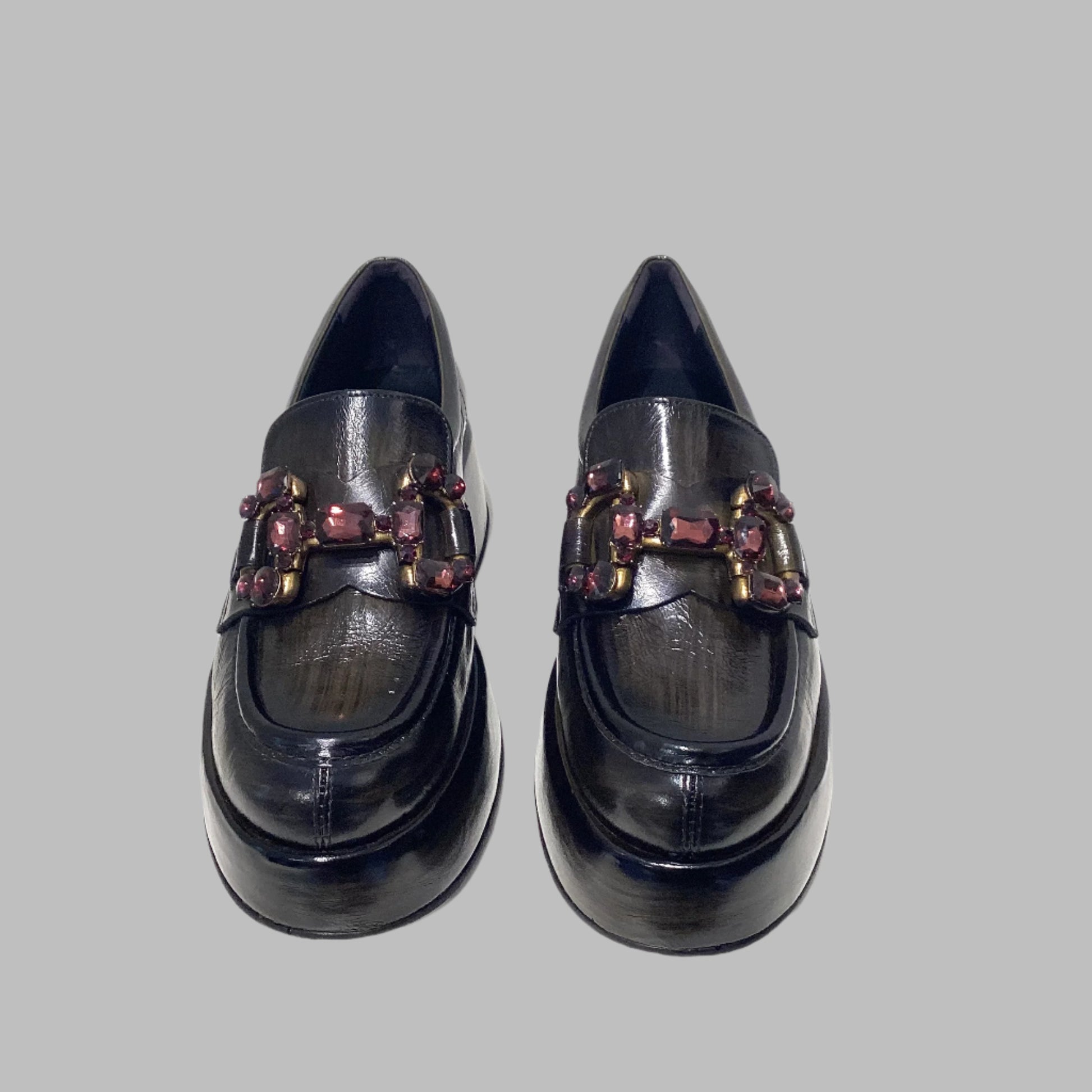 这款鞋是一款厚底乐福鞋,设计醒目精致。以下是关键细节: