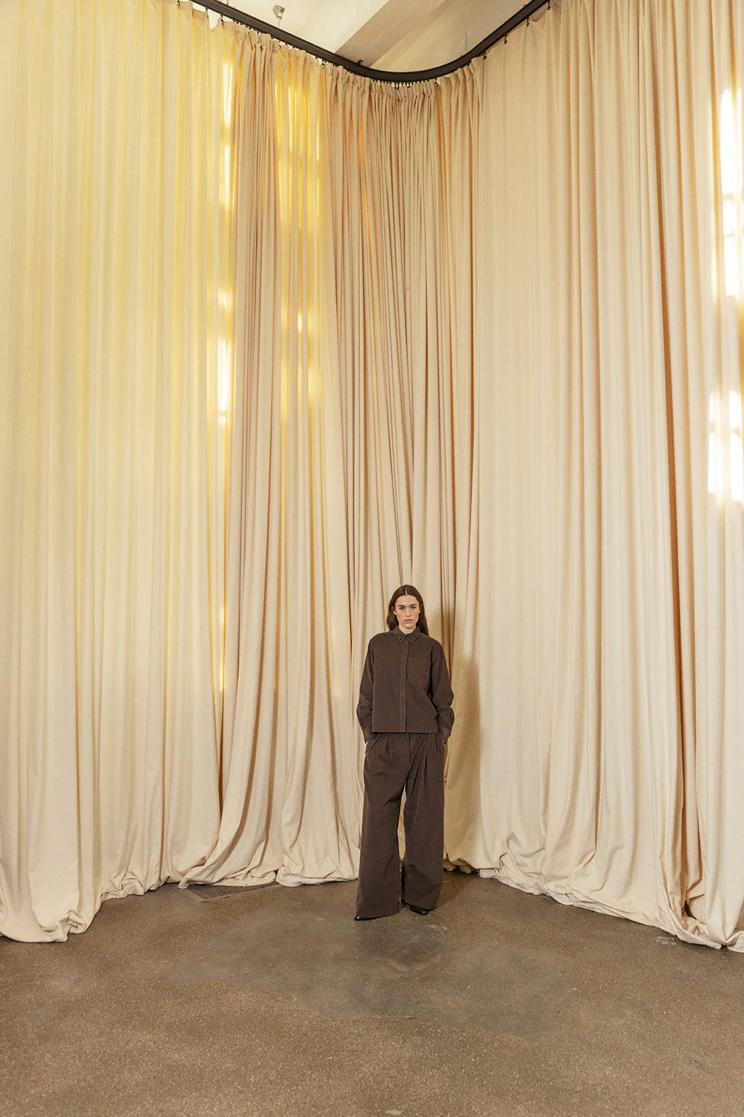 La camisa Sable de Project AJ117 está confeccionada en pana fina de algodón orgánico, ofreciendo un tacto ultrasuave, transpirable y con esa comodidad de prenda vivida que la hace única. Su diseño estructurado pero suave combina un cuello definido, un bolsillo en el pecho, cierre completo de botones y puños clásicos, logrando un estilo limpio y relajado.