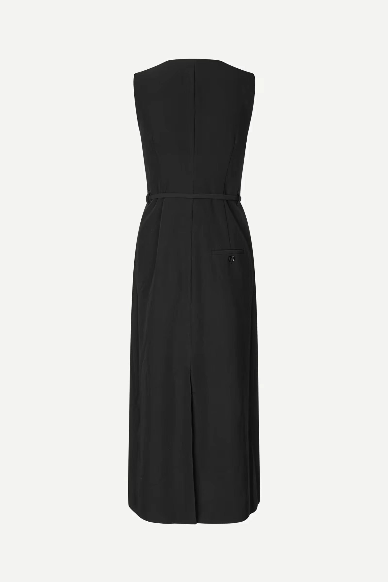 Descubre el vestido midi SAMSOE Saruma, de corte regular y diseño elegante, perfecto para ocasiones formales y looks diarios sofisticados. Presenta cierre frontal de botones, cuello redondo, bolsillo trasero de ojal con botón y cinturilla con trabillas y cinturón desmontable para un ajuste personalizado. Totalmente forrado para mayor comodidad. La longitud del hombro High Point es de 131,7 cm en talla S.